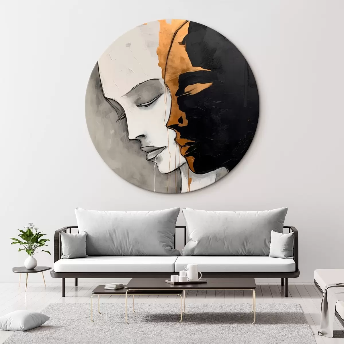 Okrągłe obrazy Kontrastujące sylwetki z abstrakcyjnymi akcentami r43280