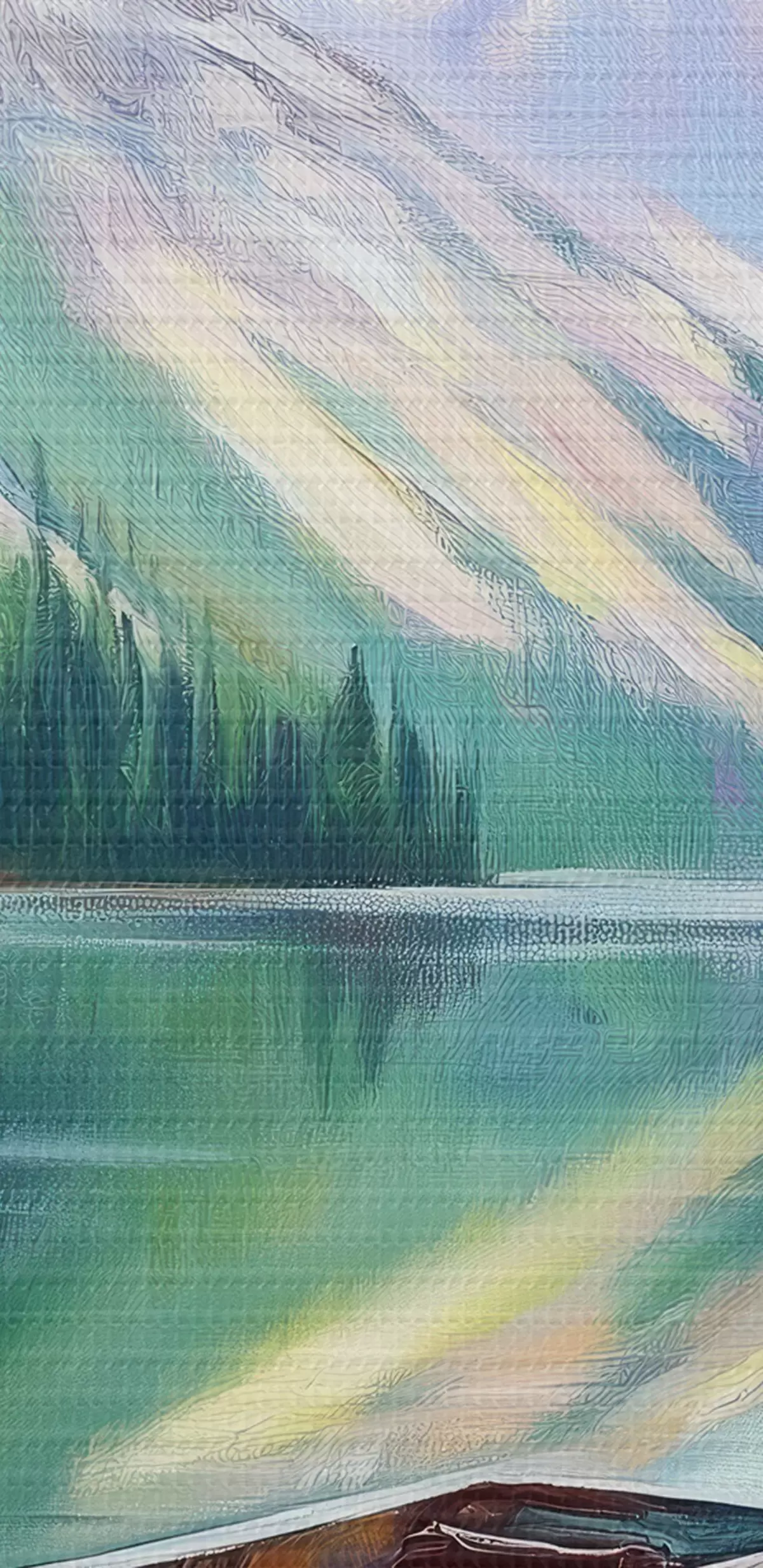 Drobny splot nici na tym płótnie przypomina powierzchnię profesjonalnych płócien artystycznych.