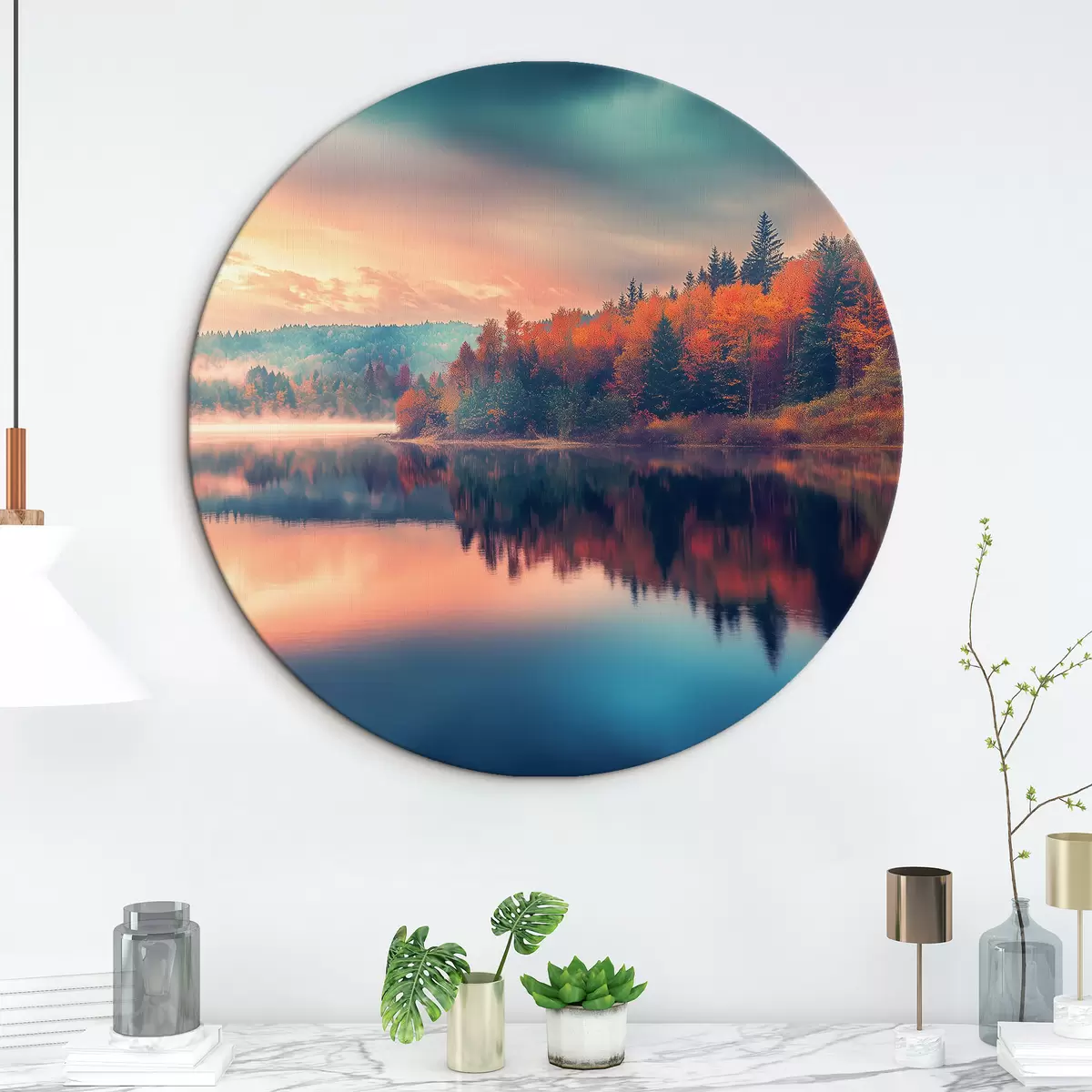 Okrągły obraz Świt nad jeziorem jesienią Nr r43290