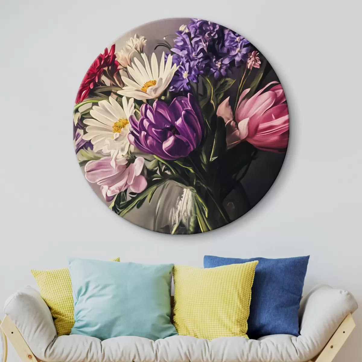 Okrągły obraz Bukiet kwiatów w wazonie Nr r43292