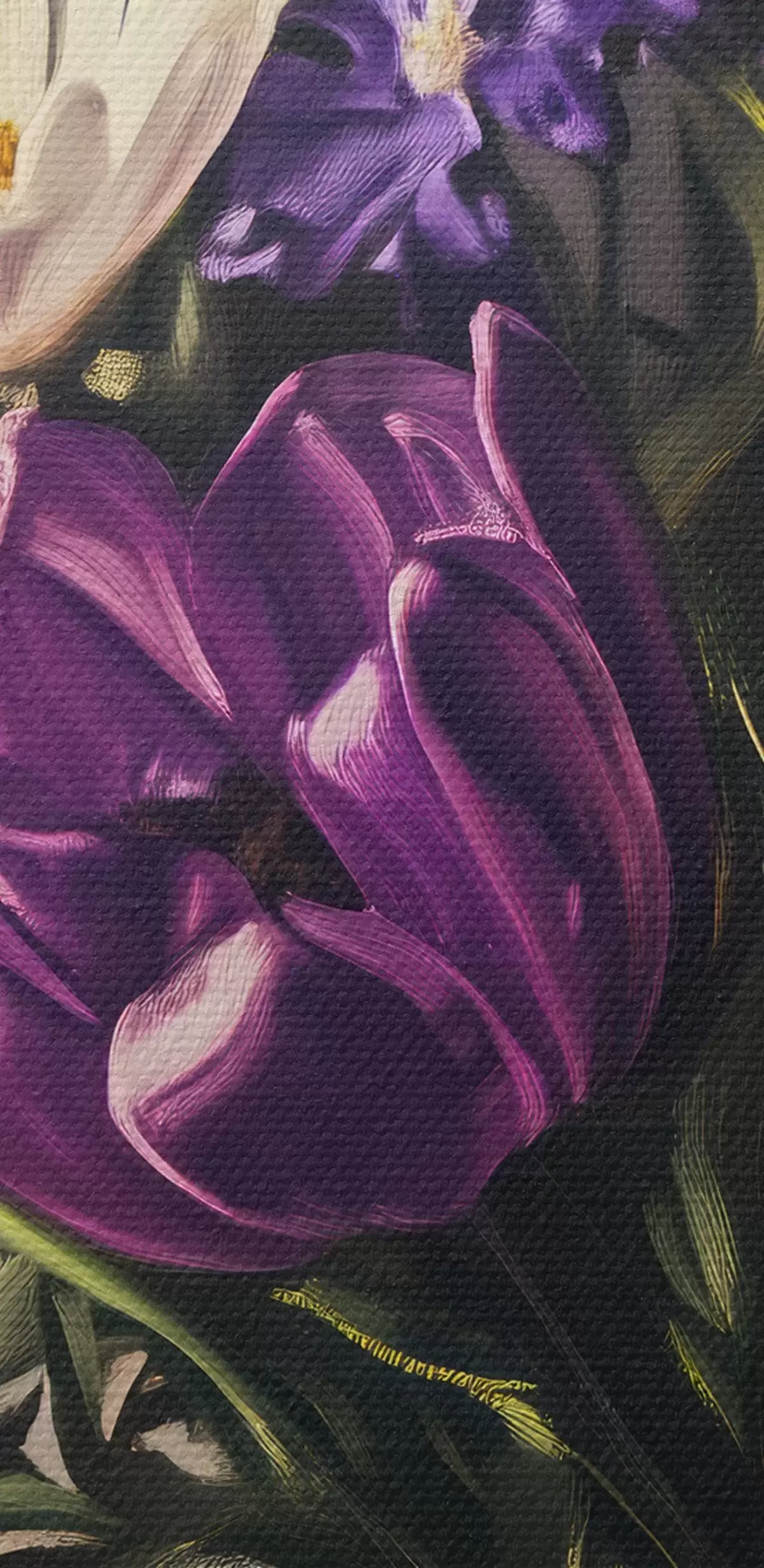 Do zamówienia dostępne są trzy rodzaje materiału: Economic Canvas - gęsty i trwały materiał do druku cyfrowego, identyczny z płótnem malarskim, wodoodporna powierzchnia, realistyczne odwzorowanie szczegółów, materiał średnioziarnisty. Premium Canvas - tekstura przypominająca płótno malarskie (przeplatane drobne nitki). Miękka, szczegółowa reprodukcja obrazu na matowej powierzchni. Eco-Premium - wysokiej jakości tkanina w 100% bawełniana. Dzięki naturalnym włóknom bawełnianym materiał jest trwały i odporny na zużycie. Doskonałe odwzorowanie kolorów i szczegółów.