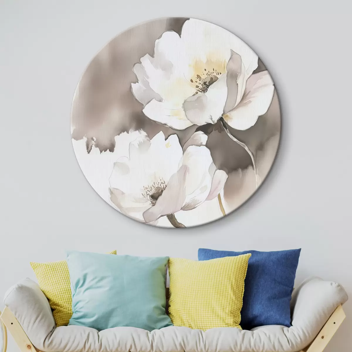 Okrągłe obrazy Białe kwiaty na brązowym tle w stylu akwareli r43297