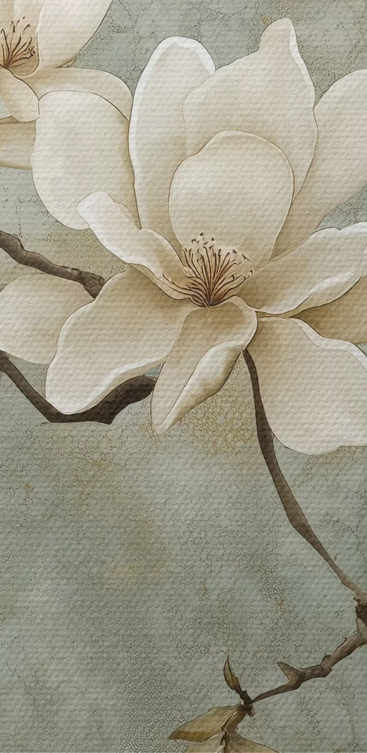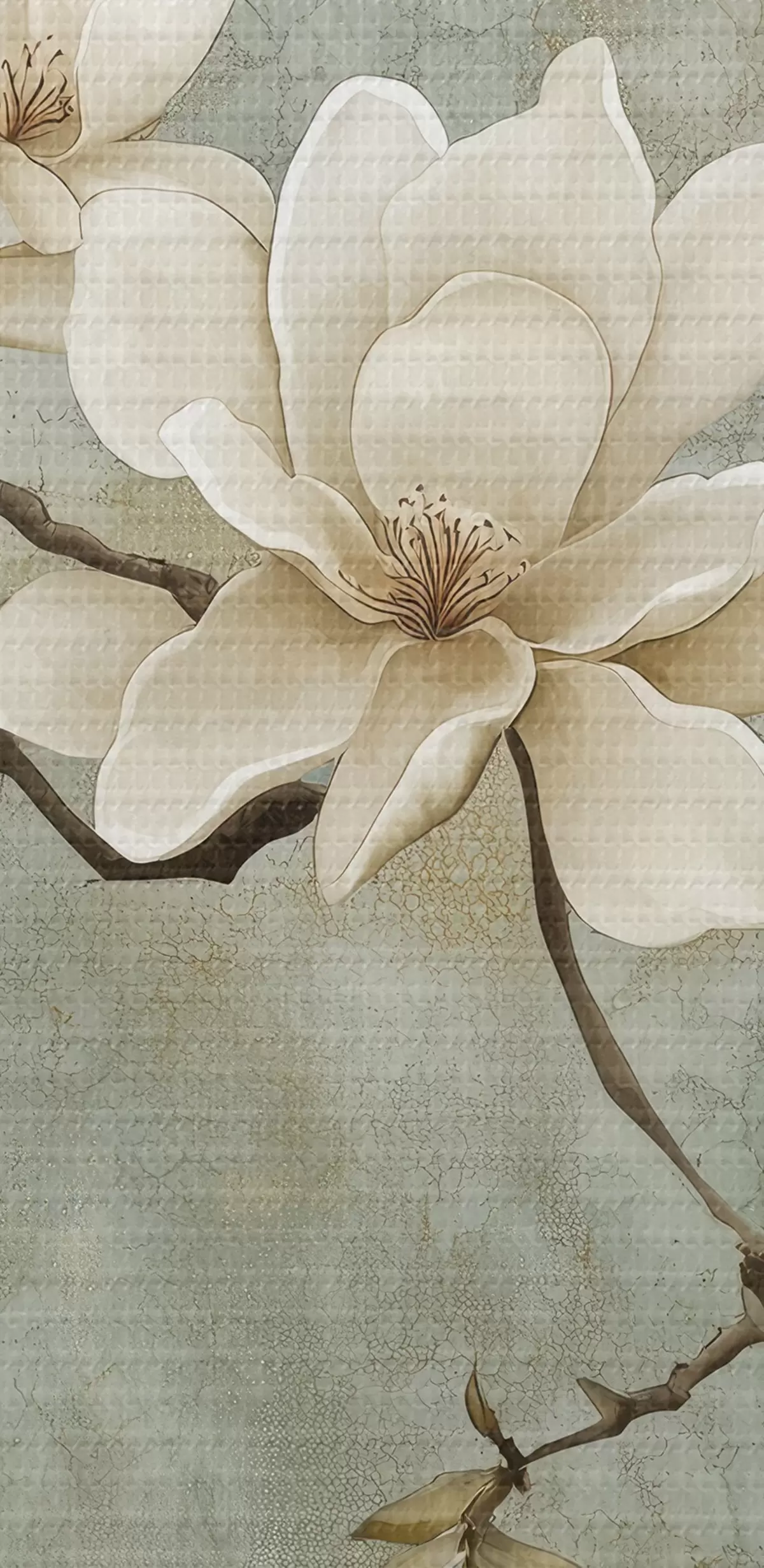 Okrągły obraz Gałązka magnolii na pastelowym grunge'owym tle Nr r43322