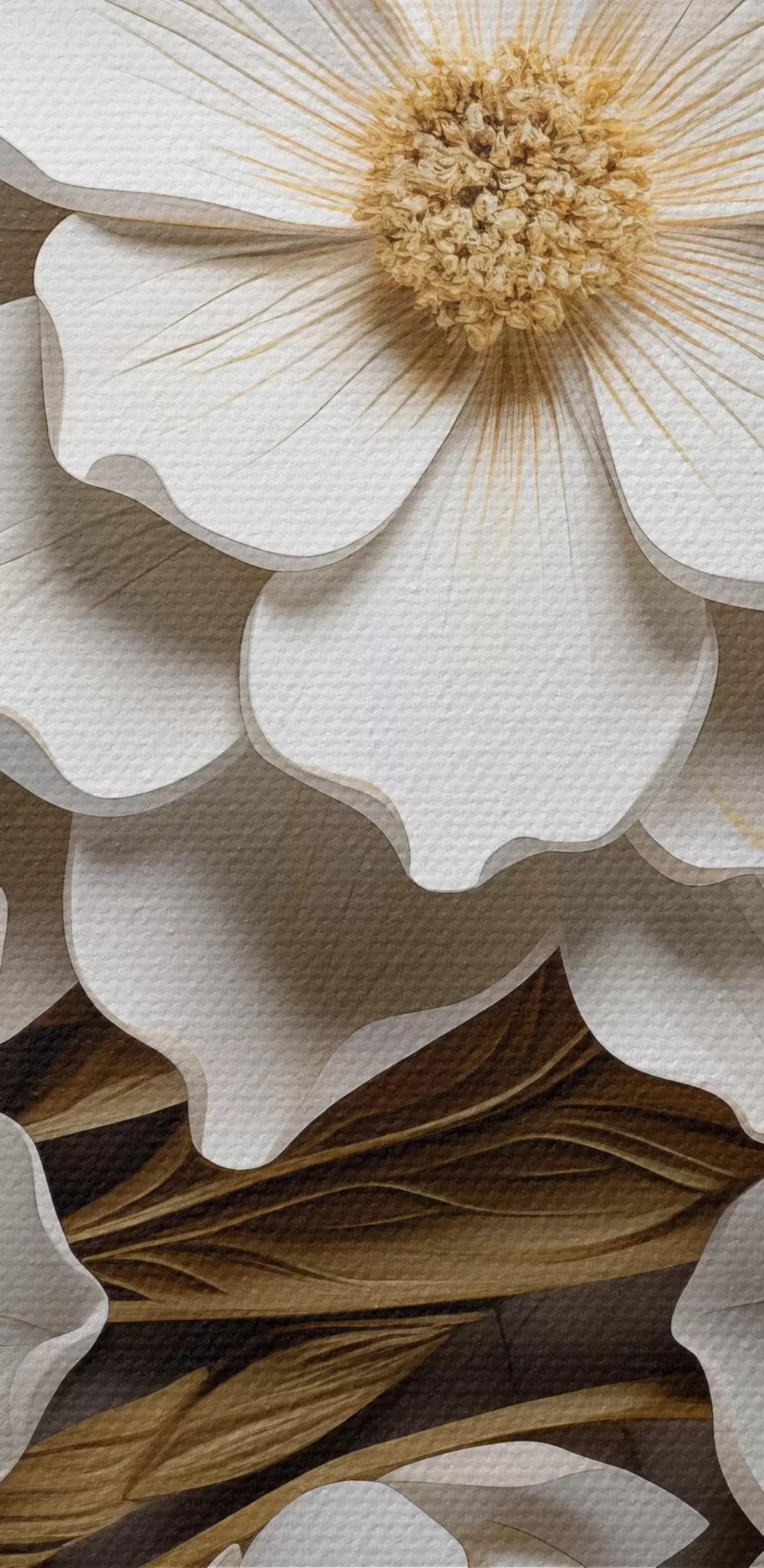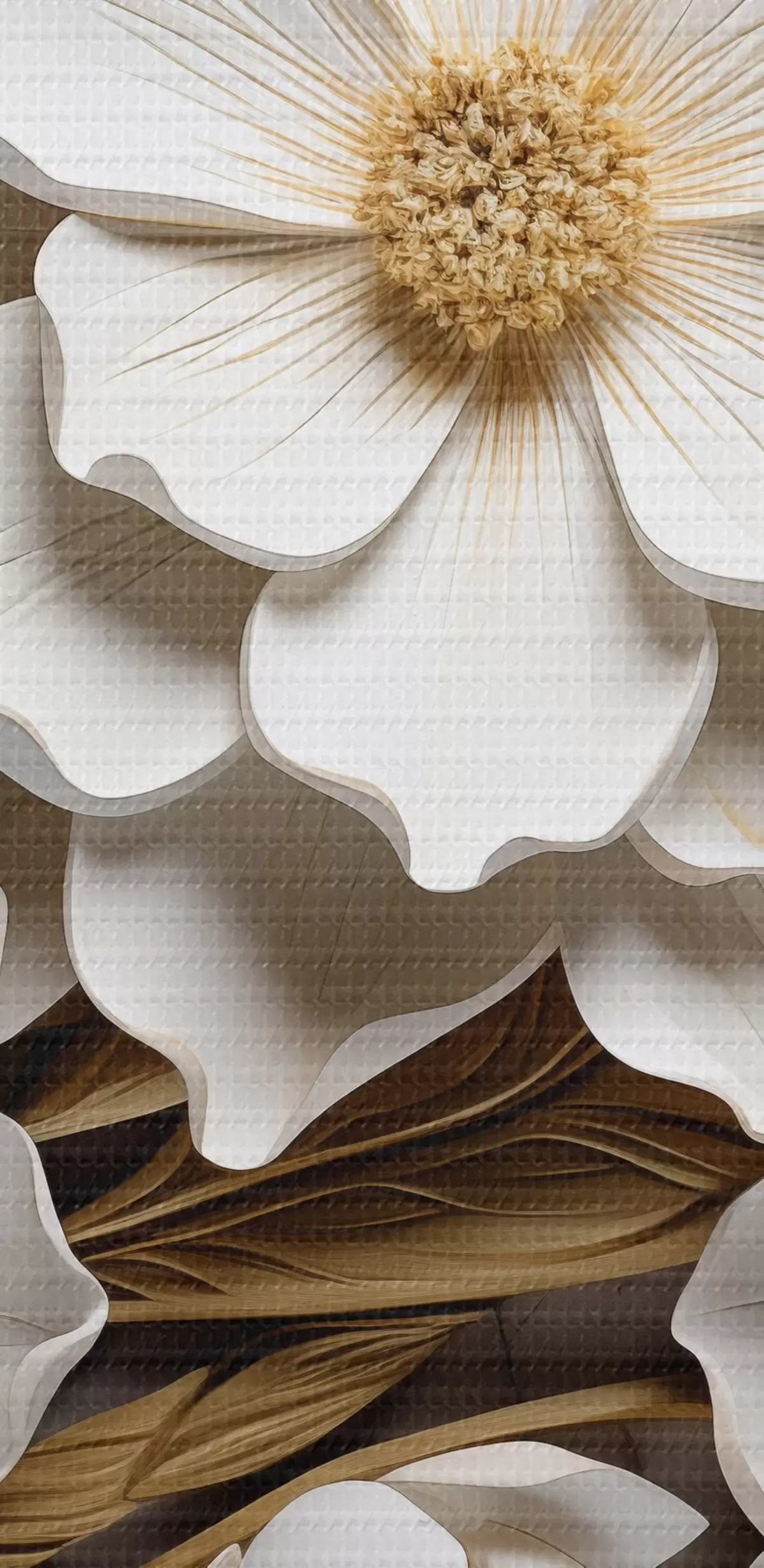Okrągły obraz Białe kwiaty w stylu reliefowego fresku z żółtymi akcentami Nr r43330