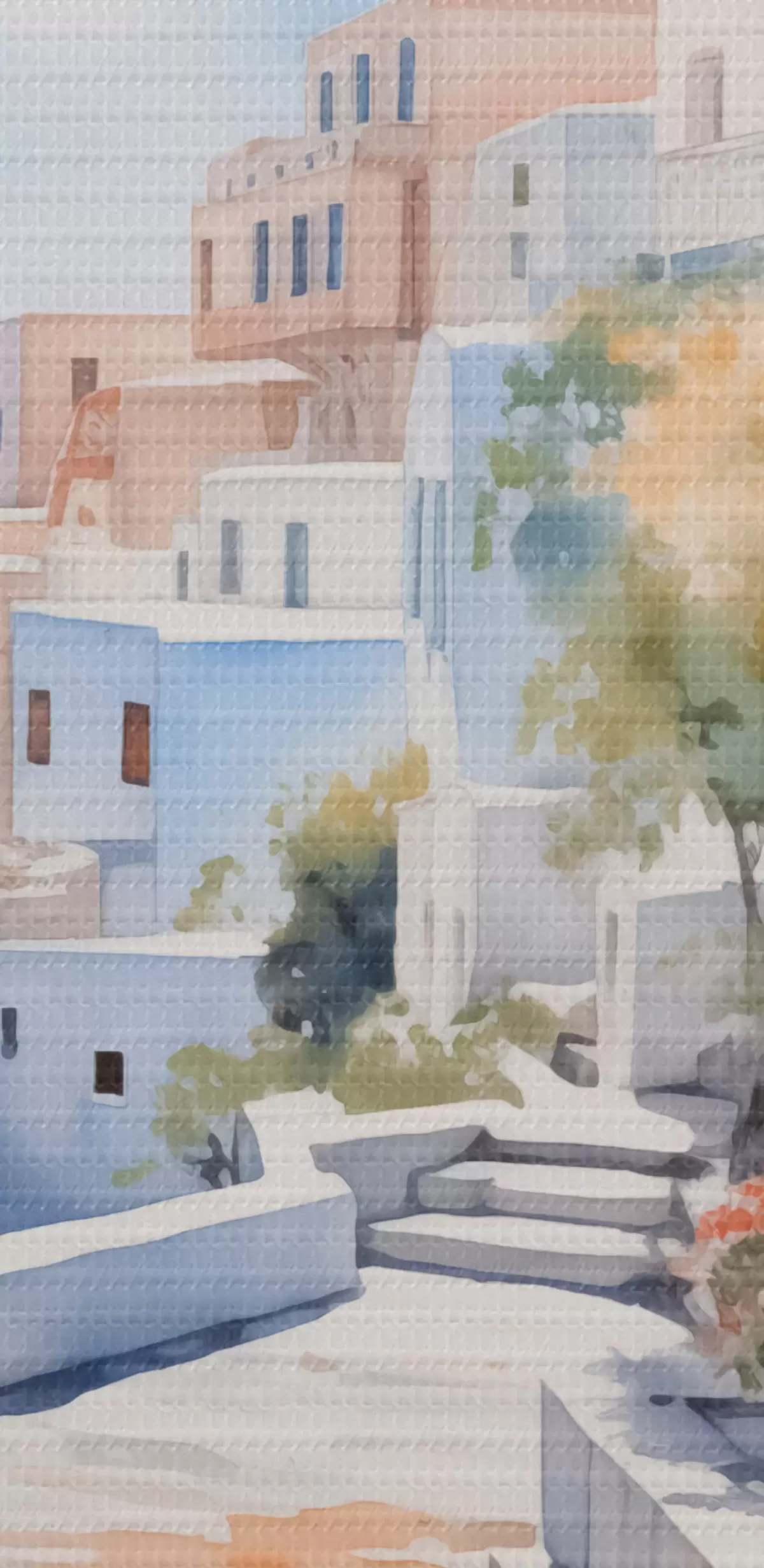 Okrągły obraz Domy nad morzem imitacja akwareli Nr r43346