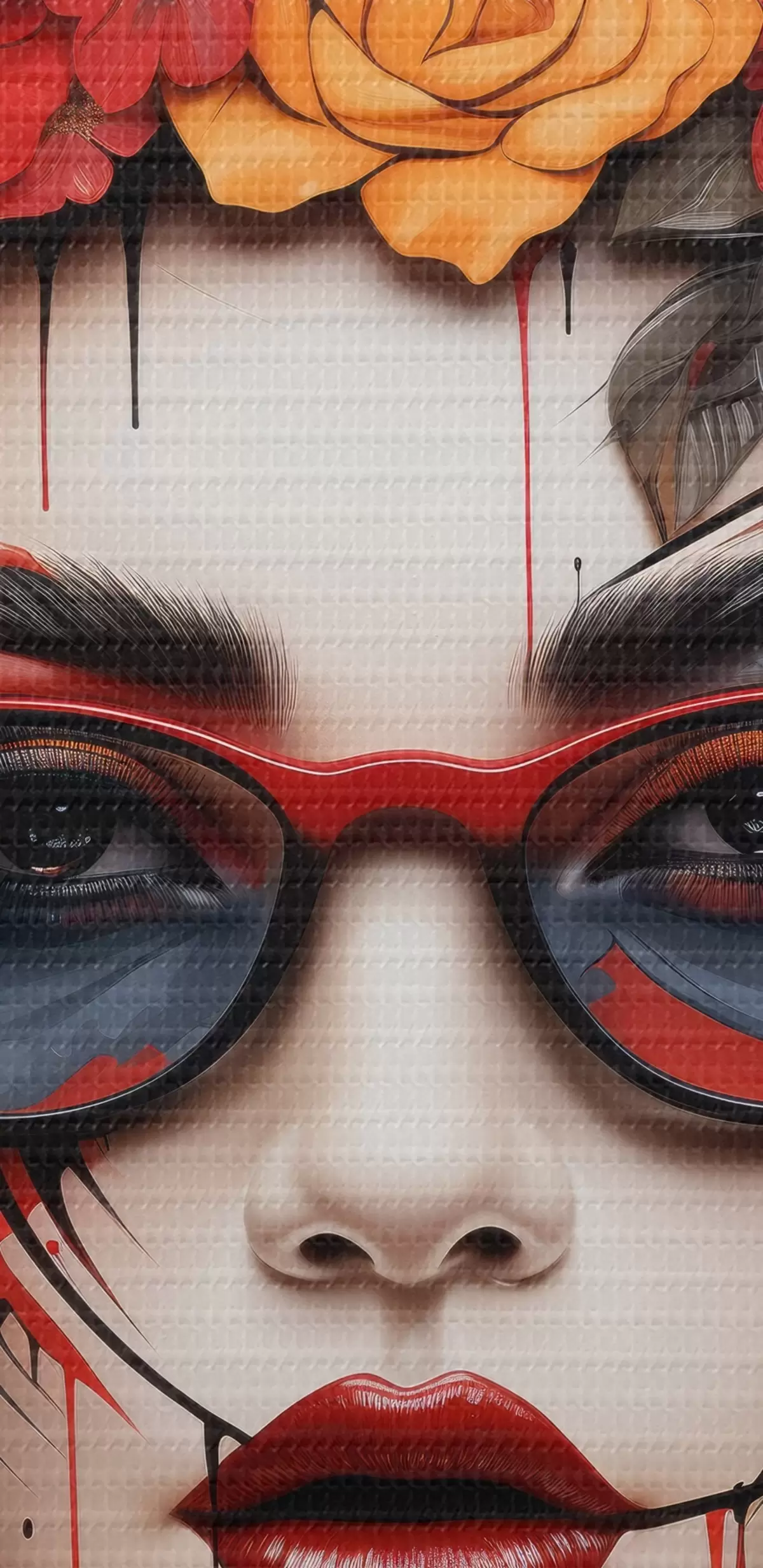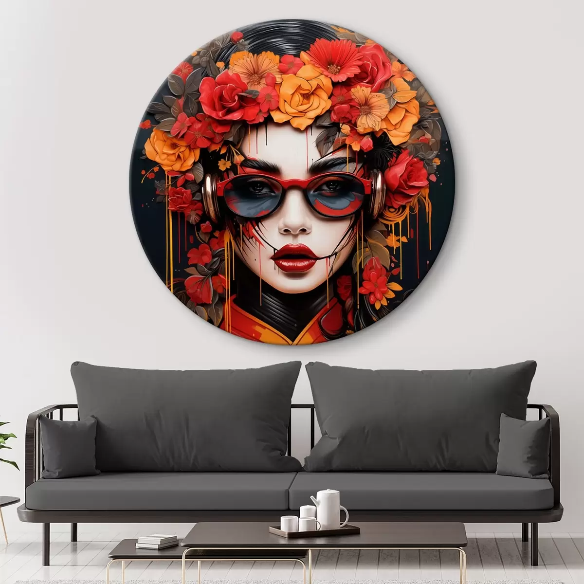Okrągły obraz Kobieta z kwiatami na głowie, styl street artu Nr r43362