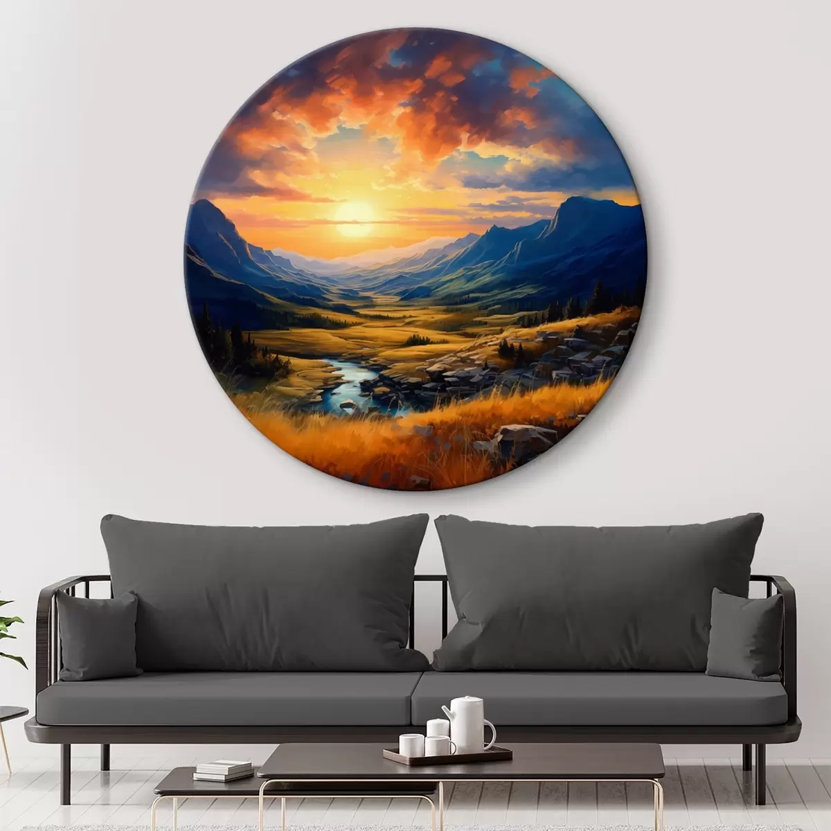 Okrągły obraz Krajobraz górski o zachodzie słońca Nr r43378