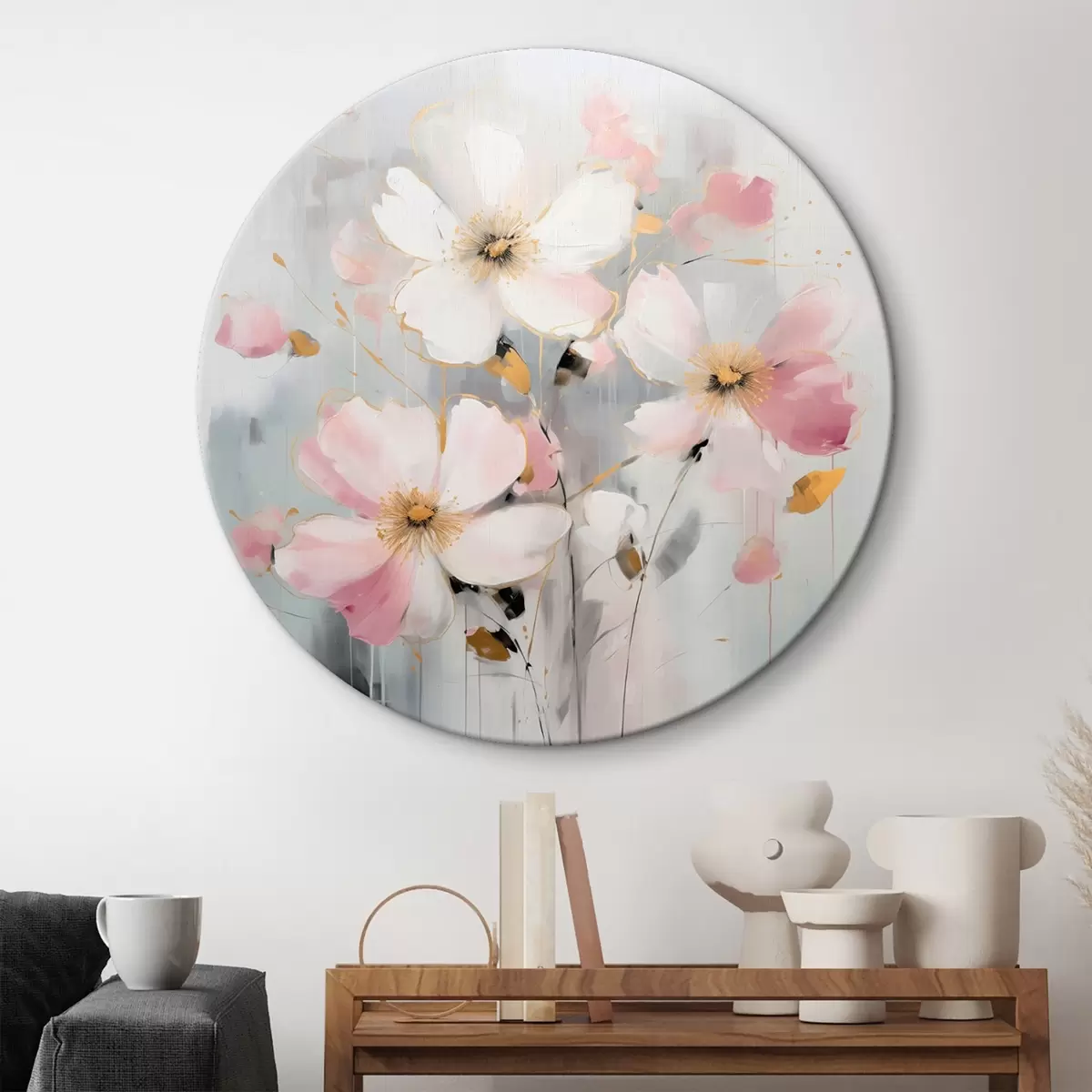 Okrągły obraz Kwiaty w delikatnych odcieniach z dużymi pociągnięciami pędzla w stylu malarskim Nr r43380