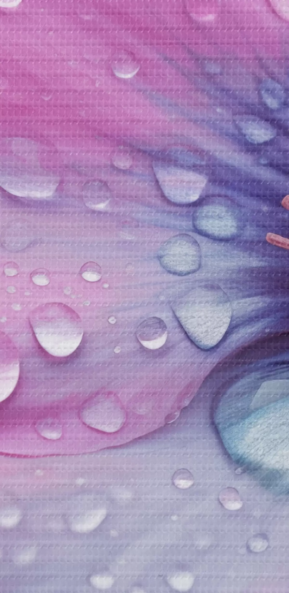 Okrągłe obrazy Różowe i fioletowe kwiaty w pełnym rozkwicie pokryte kroplami wody, na ciemnym tle r43394