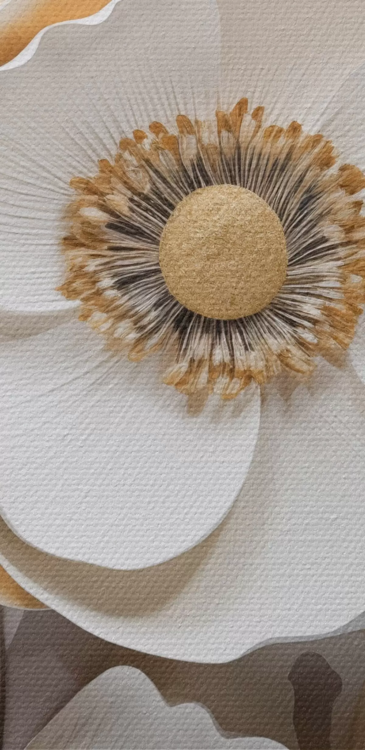 Okrągłe obrazy Białe kwiaty anemonu z żółtymi środkami, z minimalistycznym tłem, tworzące delikatny kwiatowy wzór r43400