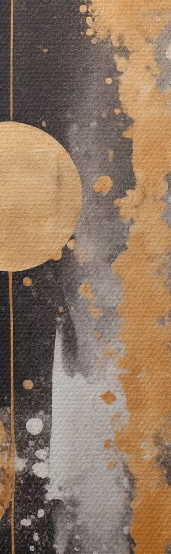 Okrągły obraz Sztuka abstrakcyjna z żółtymi okręgami wiszącymi na czarno-białym tle z białymi i żółtymi plamami Nr r43410