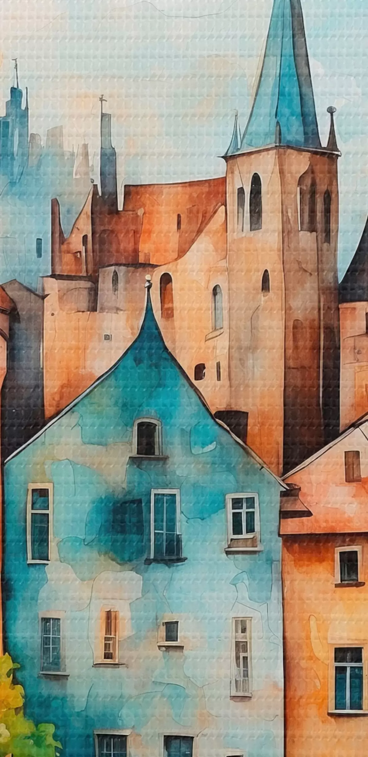 Okrągły obraz Europejskie miasto w stylu akwareli Nr r43441