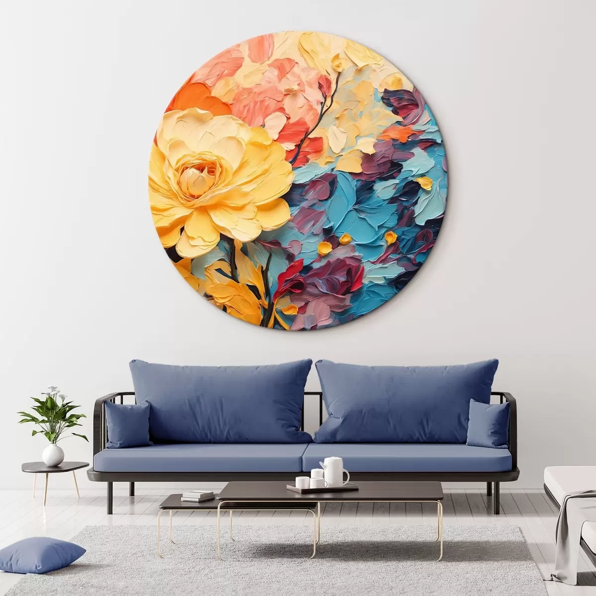 Okrągły obraz Kwiaty na abstrakcyjnym tle w stylu malarstwa olejnego Nr r43442