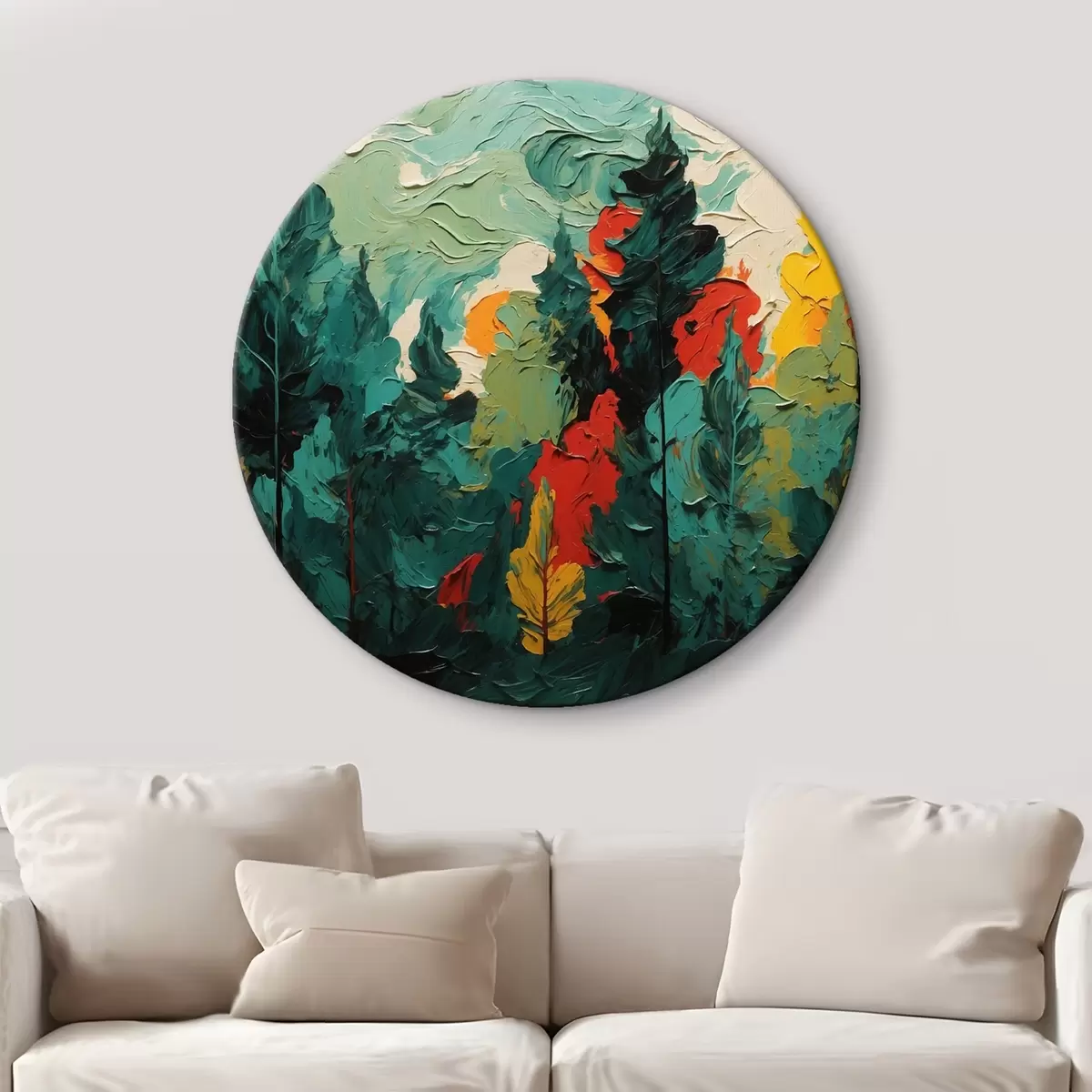 Okrągły obraz Czarny las w stylu malarstwa olejnego Nr r43444