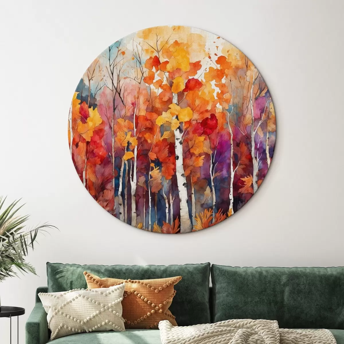 Okrągły obraz Las brzozowy w stylu akwareli Nr r43447