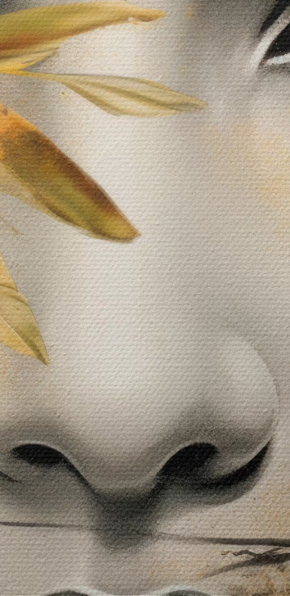 Drobny splot nici na tym płótnie przypomina powierzchnię profesjonalnych płócien artystycznych.