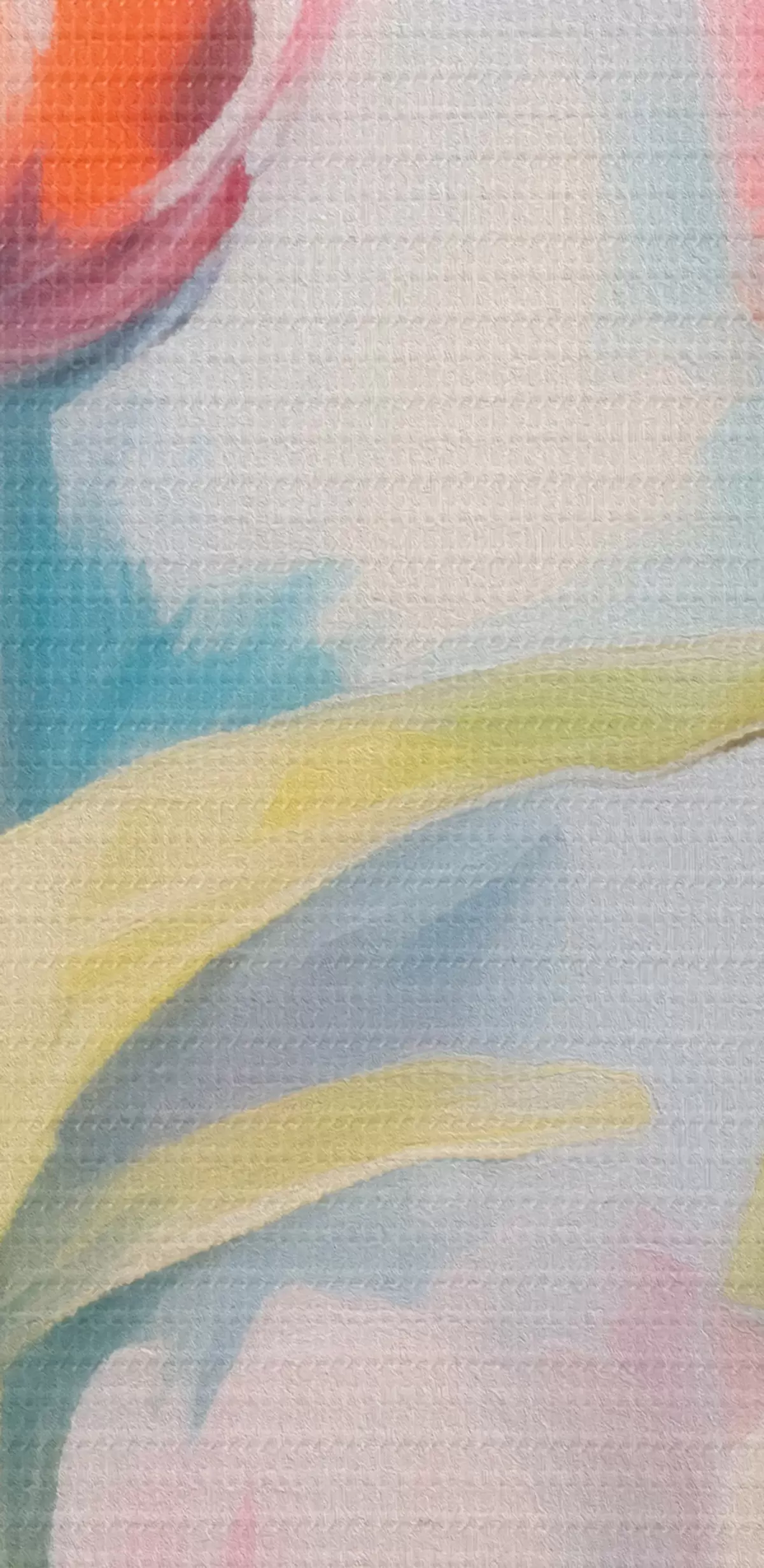 Drobny splot nici na tym płótnie przypomina powierzchnię profesjonalnych płócien artystycznych.