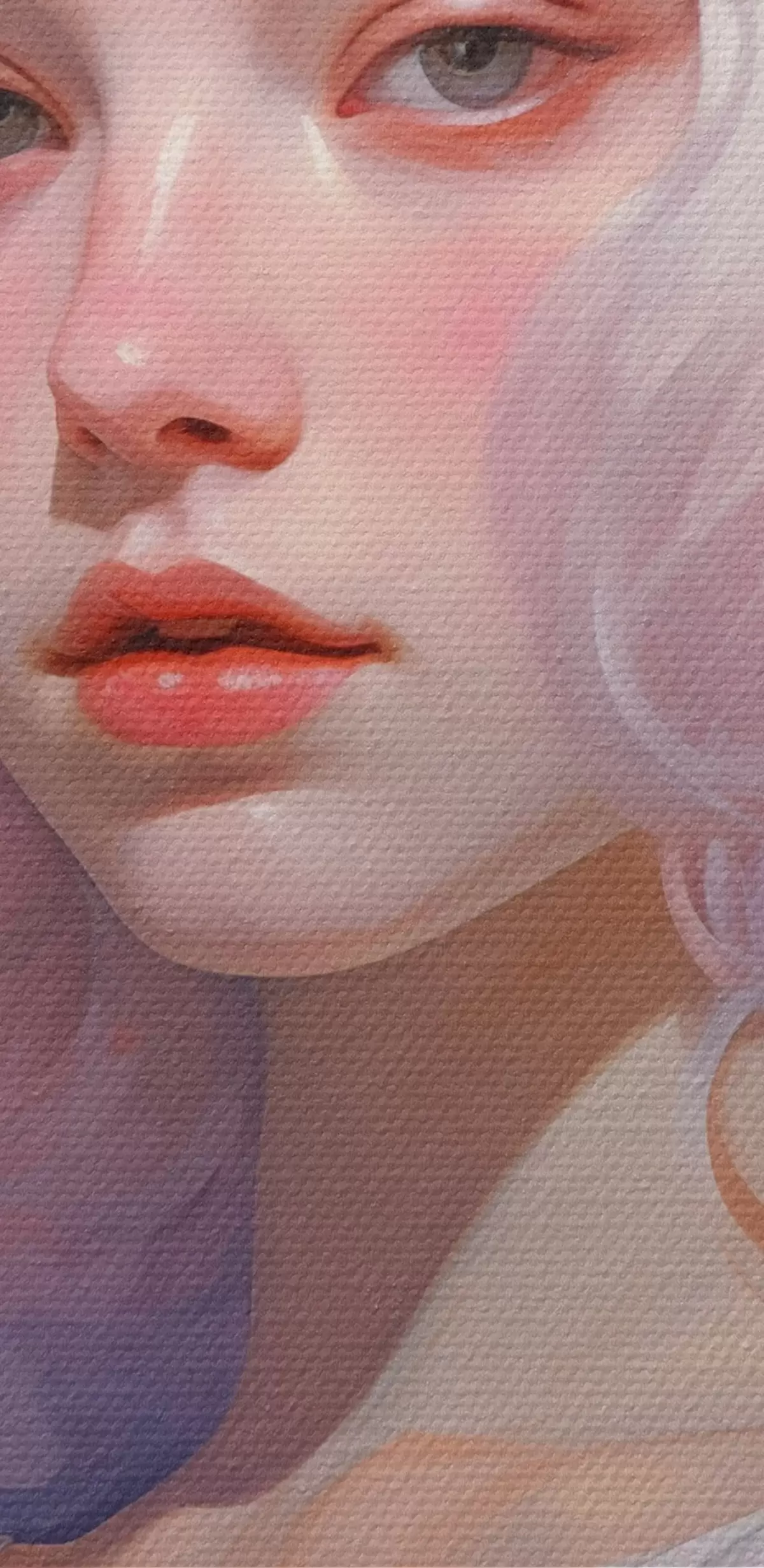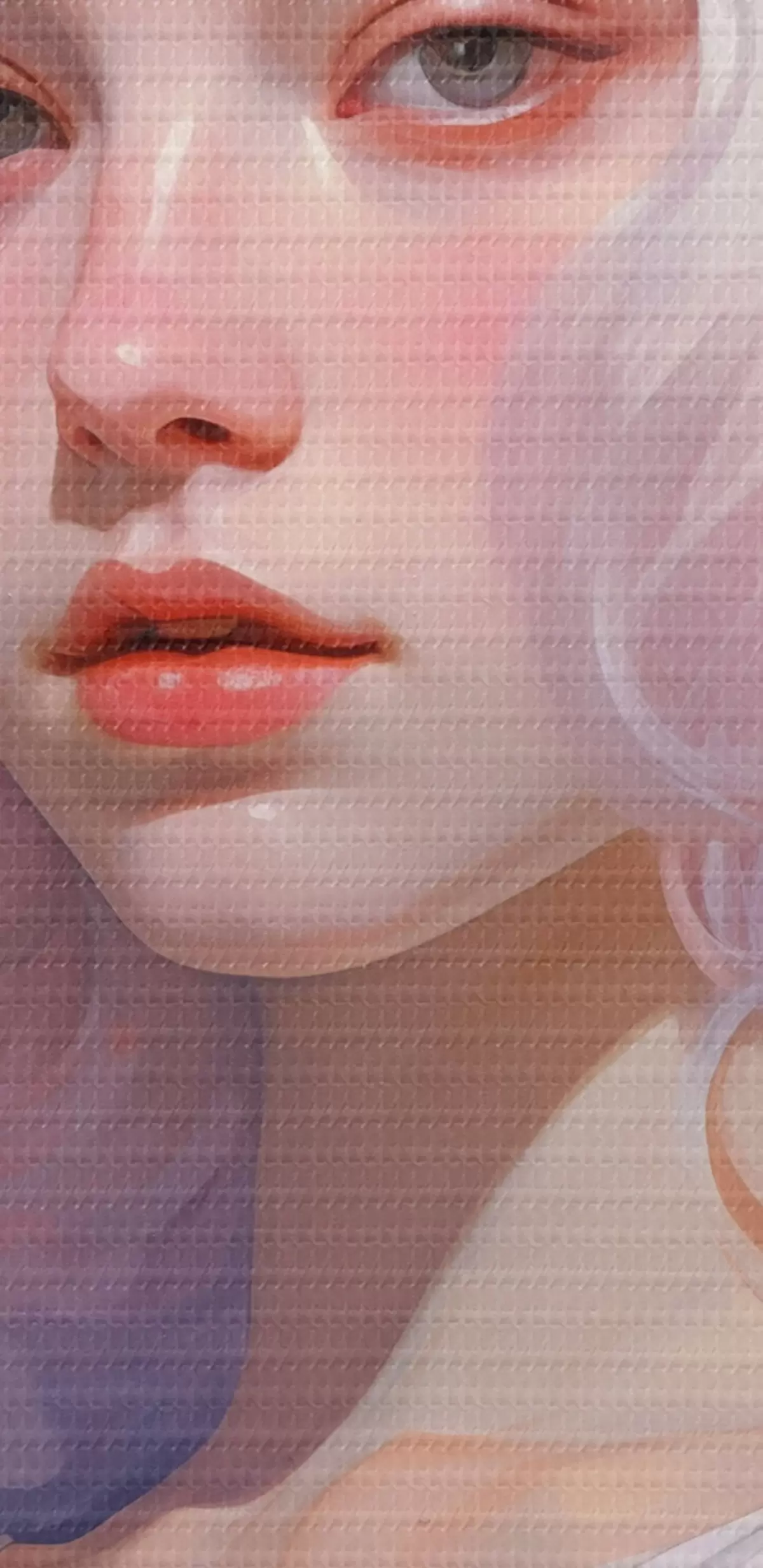 Drobny splot nici na tym płótnie przypomina powierzchnię profesjonalnych płócien artystycznych.