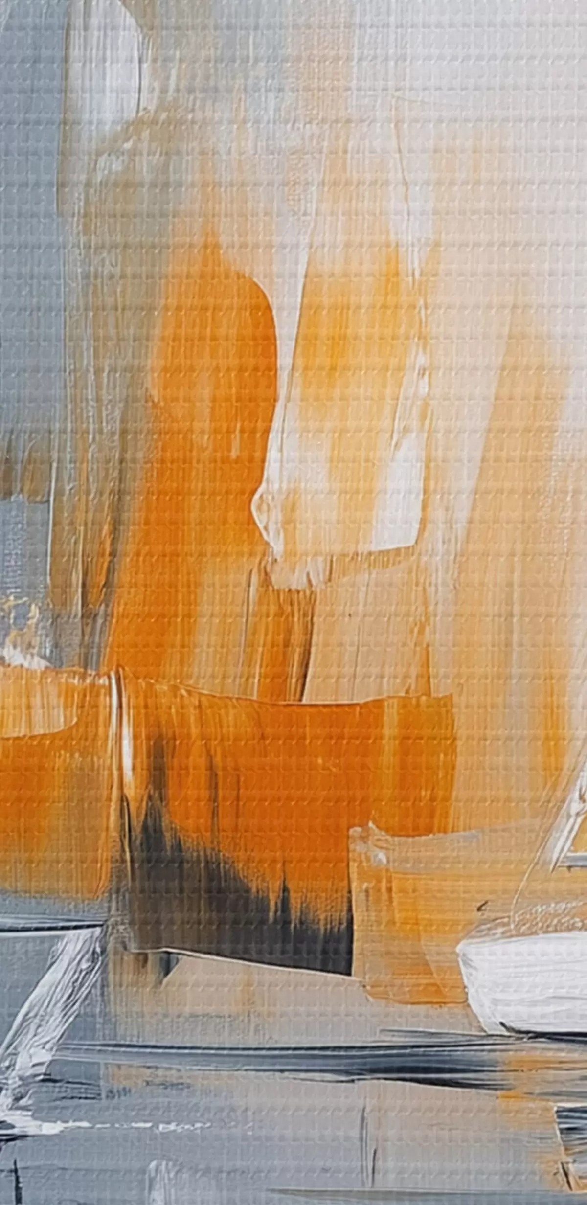 Okrągłe obrazy Żaglówki, abstrakcja, rysunek akrylowy, szary i pomarańczowy r43499