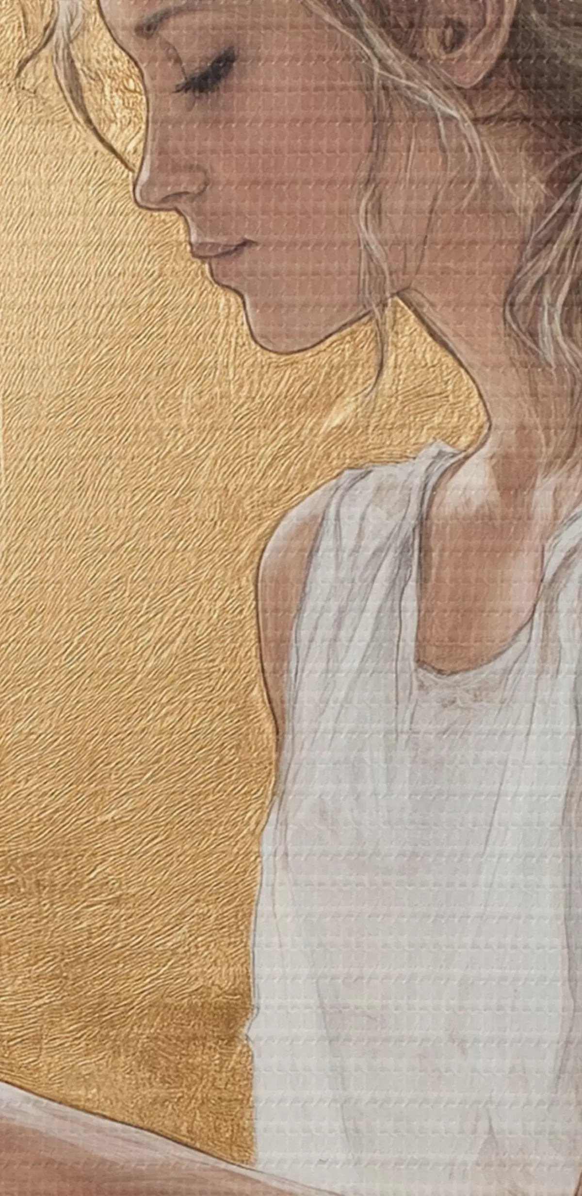 Drobny splot nici na tym płótnie przypomina powierzchnię profesjonalnych płócien artystycznych.
