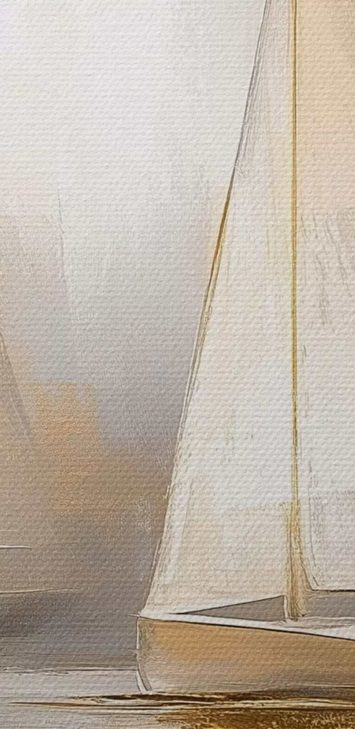 Okrągły obraz Łodzie na morzu, abstrakcja, olej, beżowe kolory Nr r43505