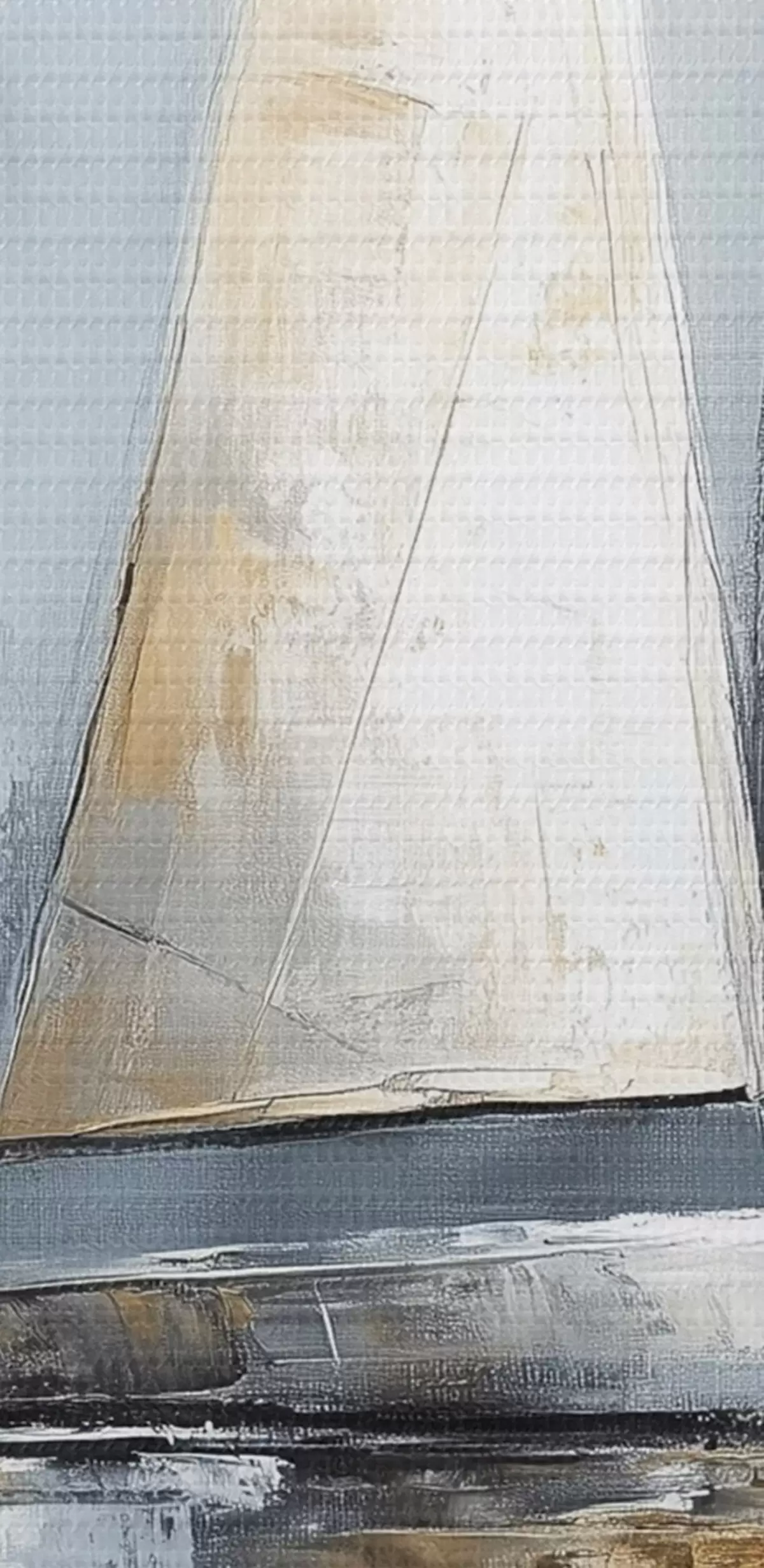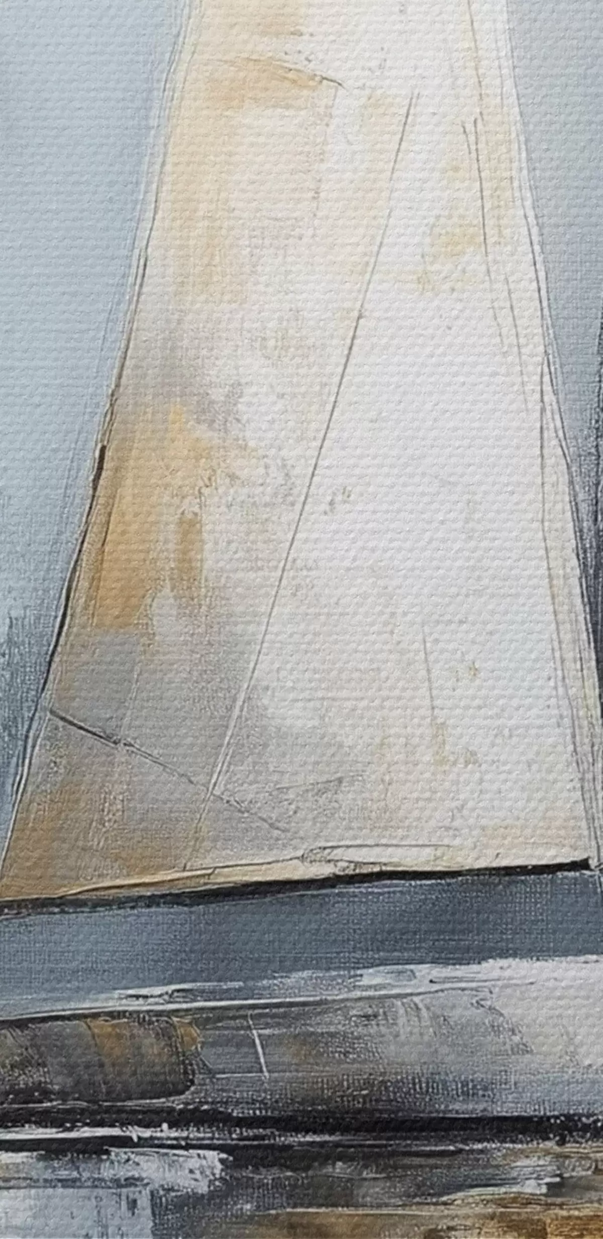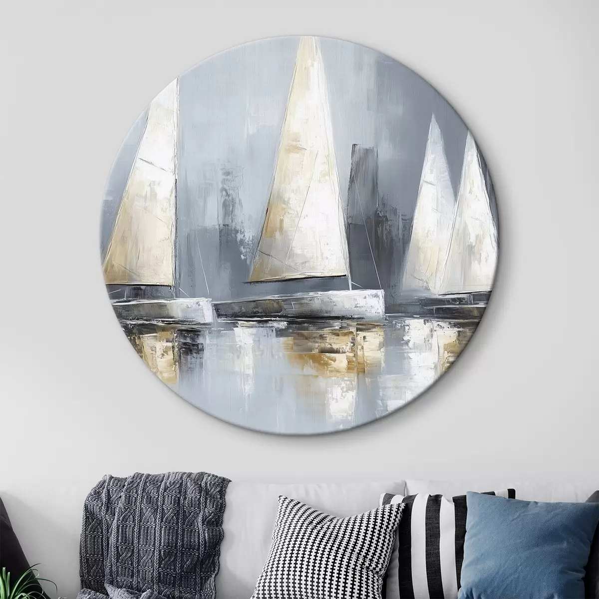Okrągły obraz Żaglówki z odbiciami w wodzie, rysunek olejny, szare kolory Nr r43506