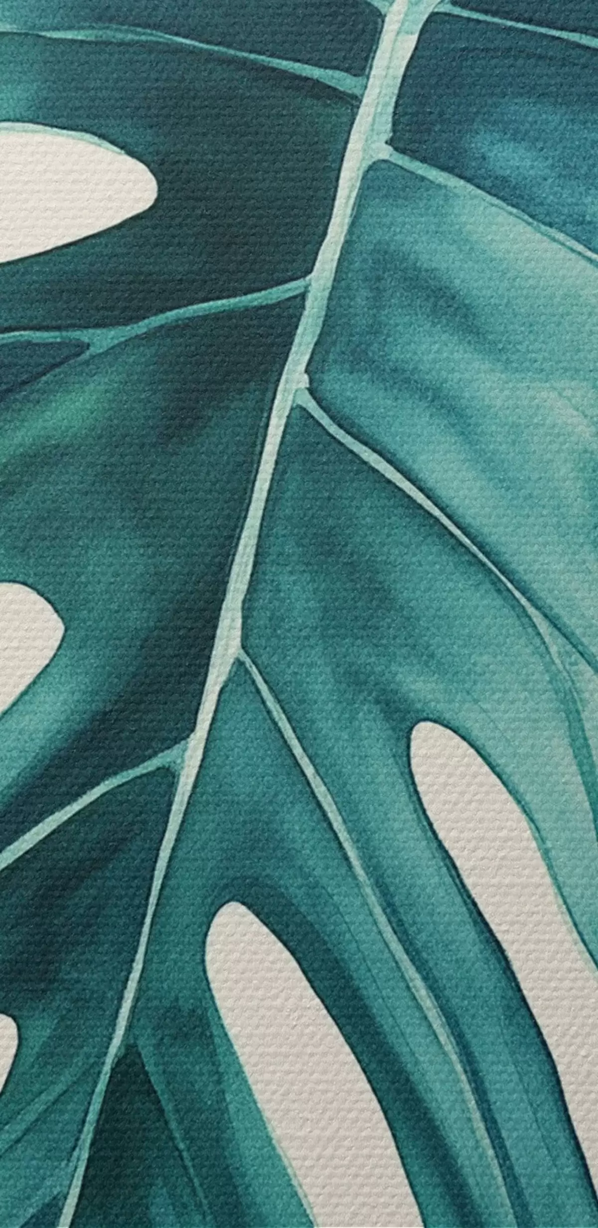 Okrągły obraz Liście palmy Monstera, styl akwareli, kwiatowy, tropikalny Nr r43507