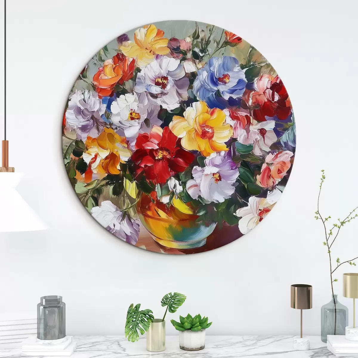 Okrągłe obrazy Wielokolorowe kwiaty w wazonie w stylu farby olejnej r43909