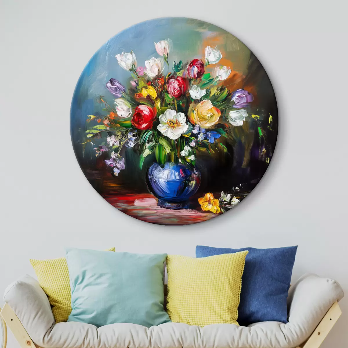 Okrągłe obrazy Bukiet wielokolorowych kwiatów r43911
