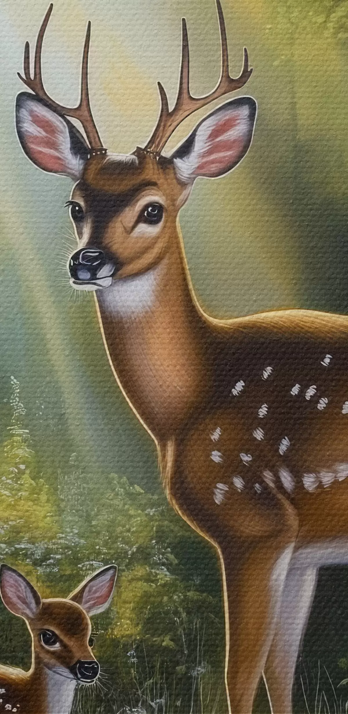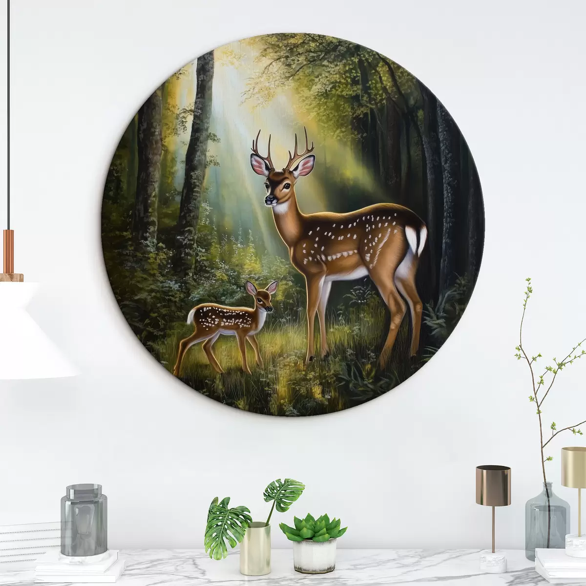 Okrągłe obrazy Jeleń i młode w lesie r43915