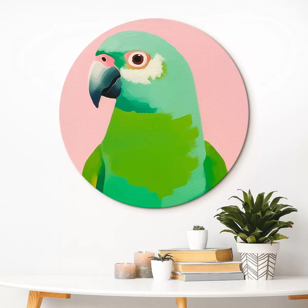 Okrągły obraz Zielona papuga Nr r43928