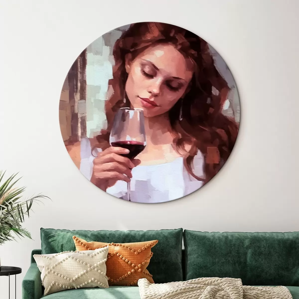 Okrągły obraz Dziewczyna z winem Nr r43936