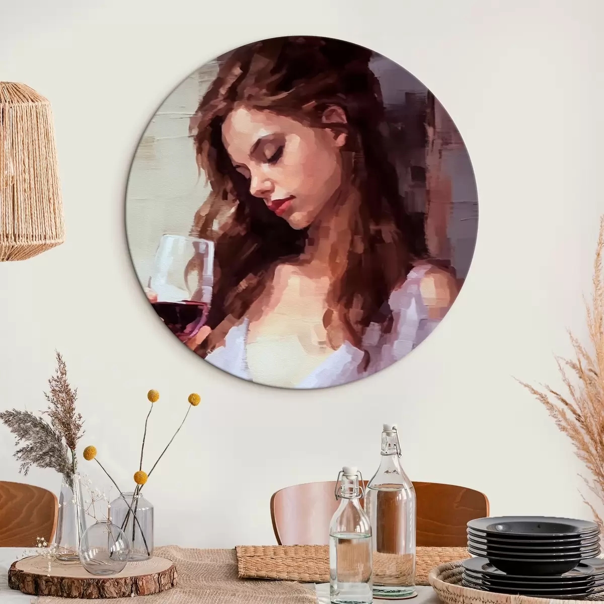 Okrągły obraz Dziewczyna z kieliszkiem wina Nr r43940