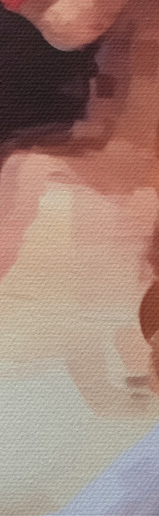 Drobny splot nici na tym płótnie przypomina powierzchnię profesjonalnych płócien artystycznych.