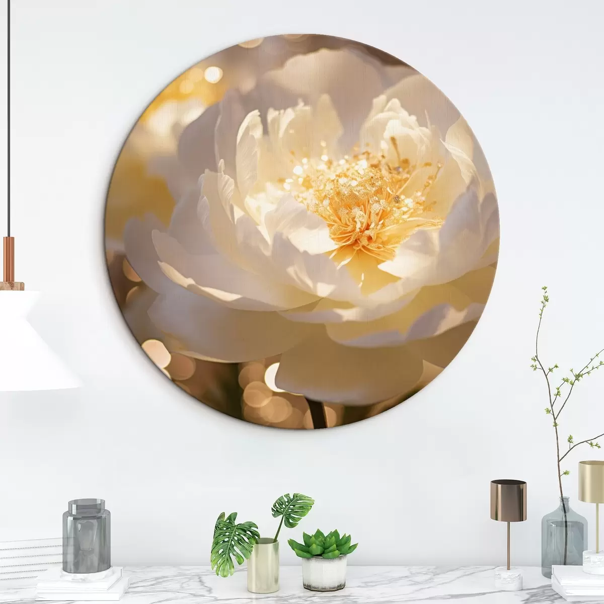 Okrągły obraz Biały kwiat na rozmytym tle Nr r43947