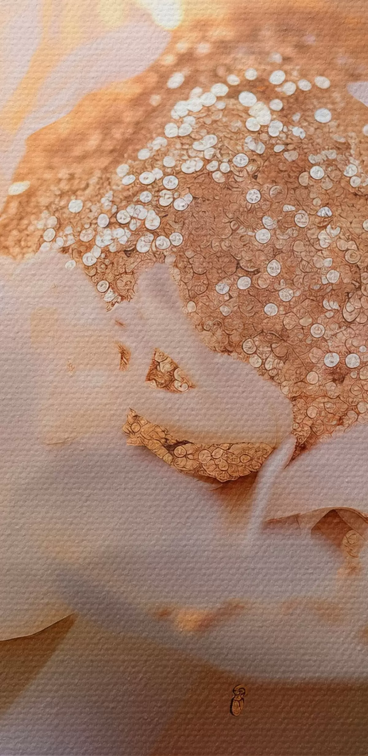 Drobny splot nici na tym płótnie przypomina powierzchnię profesjonalnych płócien artystycznych.
