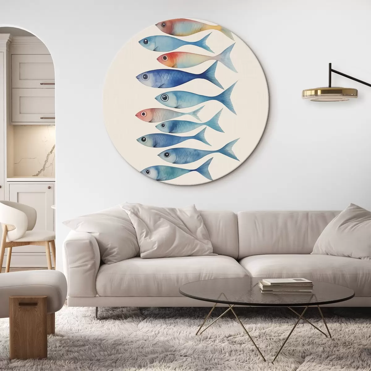 Okrągły obraz Rybi minimalizm imitujący akwarelę Nr r43960
