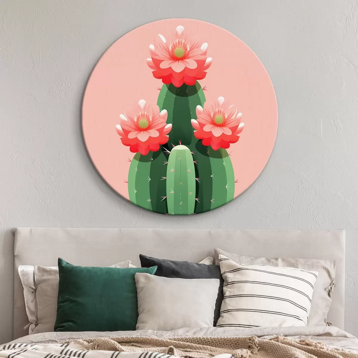 Okrągły obraz Kwitnący kaktus w doniczce Nr r43996