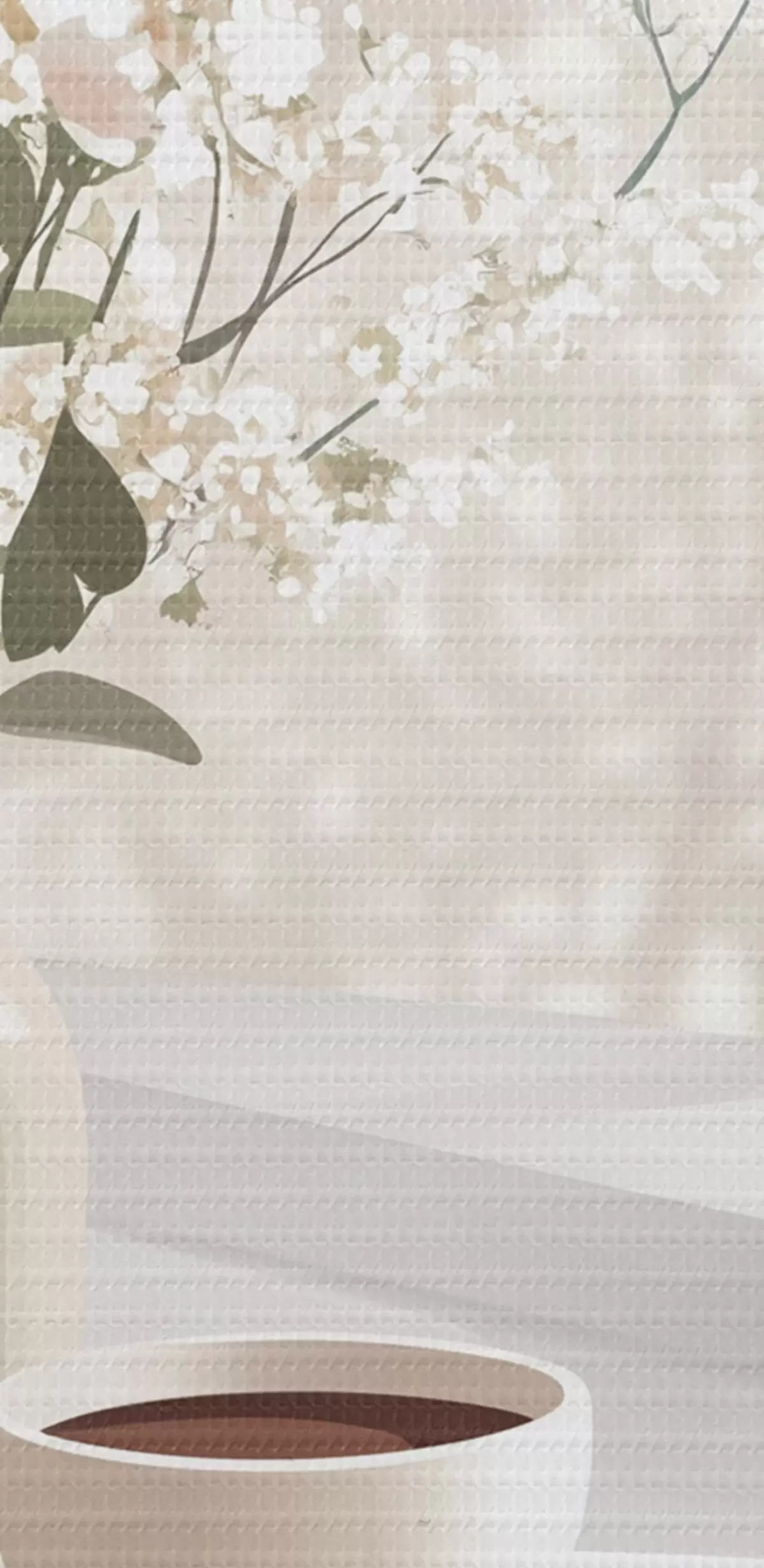 Okrągły obraz Wiosenny poranek z kawą i kwiatami, delikatne pastelowe kolory Nr r44015