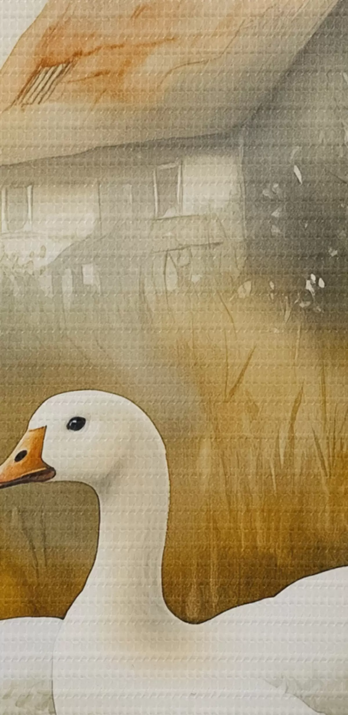 Okrągły obraz Gęsi w jeziorze w pobliżu gospodarstwa, rustykalny styl akwareli Nr r44022
