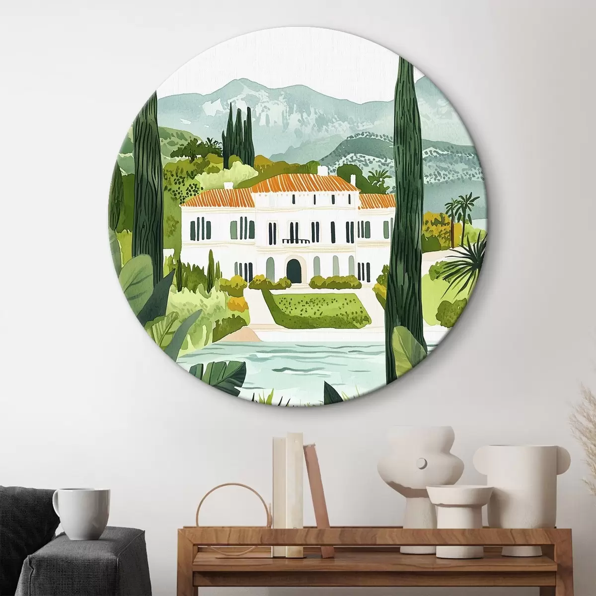 Okrągłe obrazy Hiszpania, letnie krajobrazy, drzewa cytrynowe, architektoniczne, tropikalne r44026