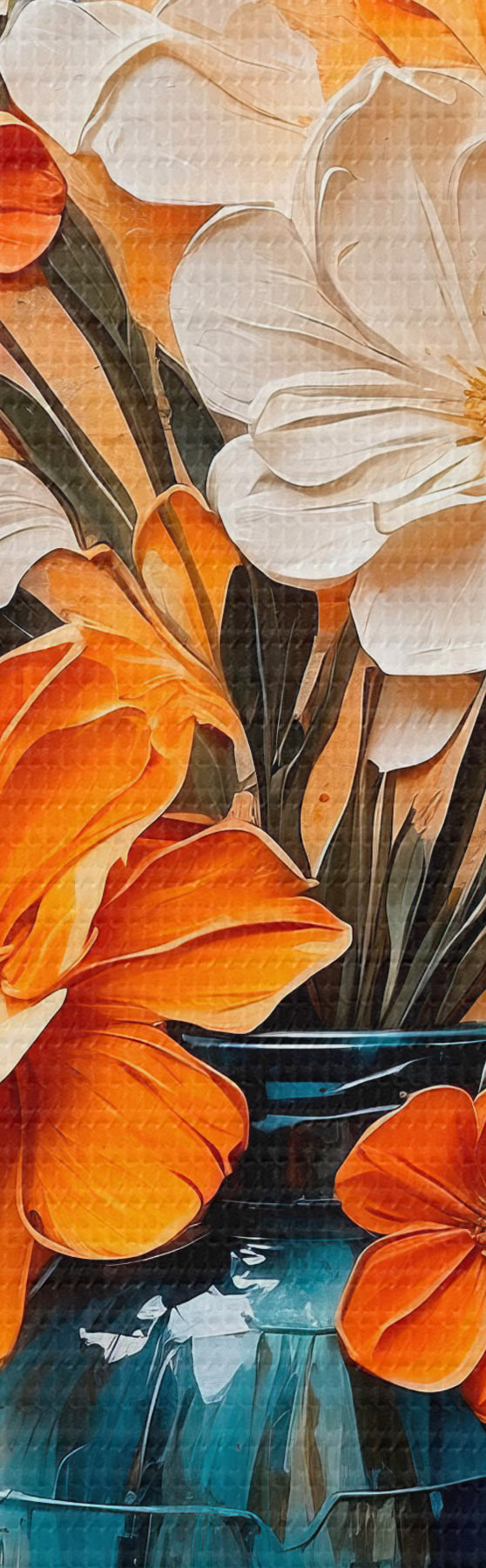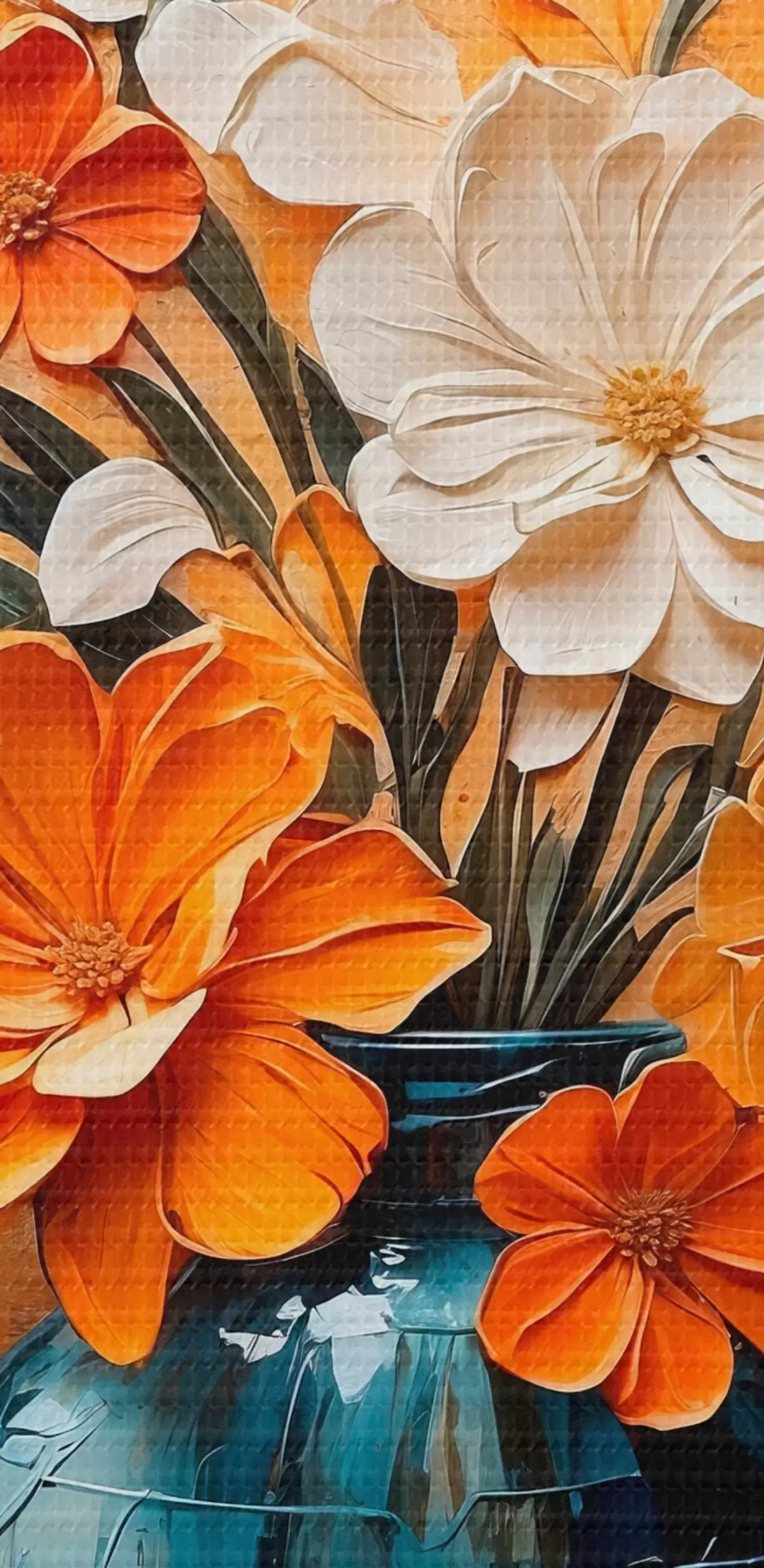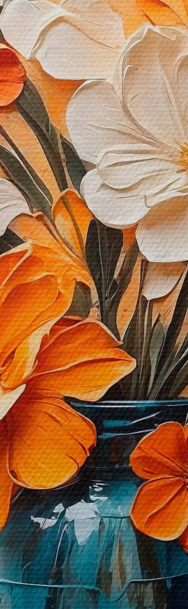 Okrągły obraz Białe i pomarańczowe kwiaty w wazonie w stylu malarstwa olejnego Nr r44059
