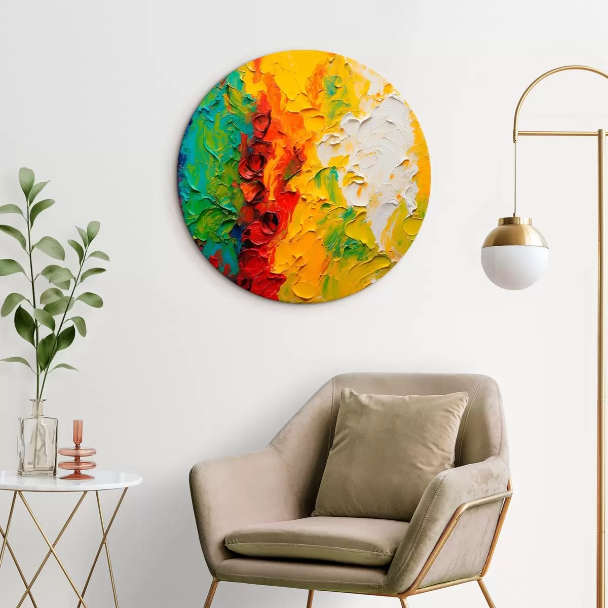 Okrągły obraz Abstrakcyjny obraz olejny w kolorach tęczy Nr r44073