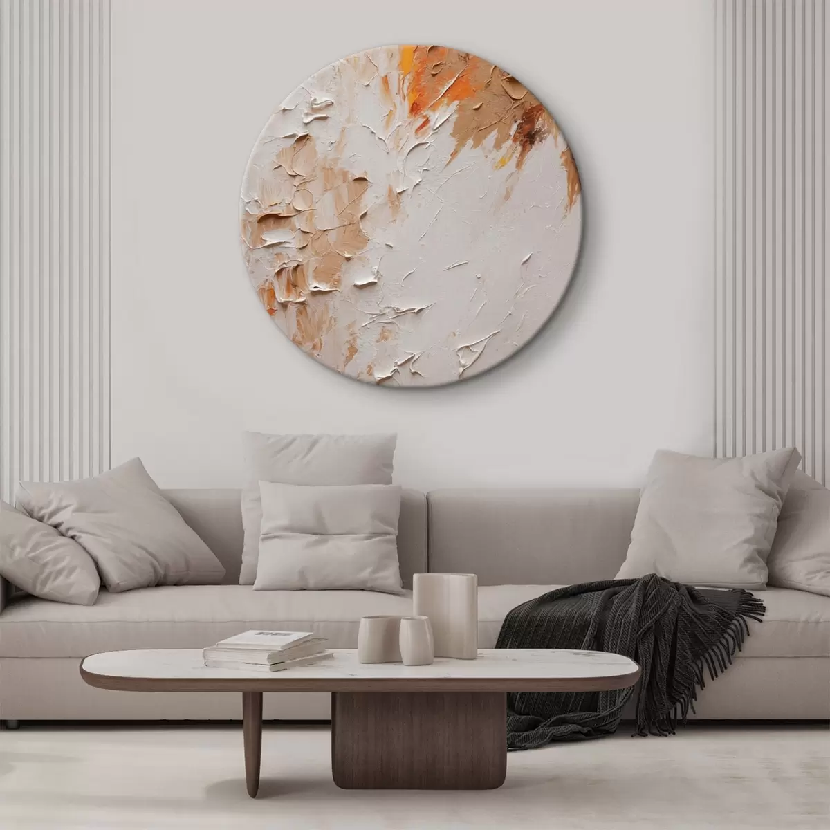 Okrągłe obrazy Abstrakcyjny obraz olejny z białymi i brązowymi kolorami r44076