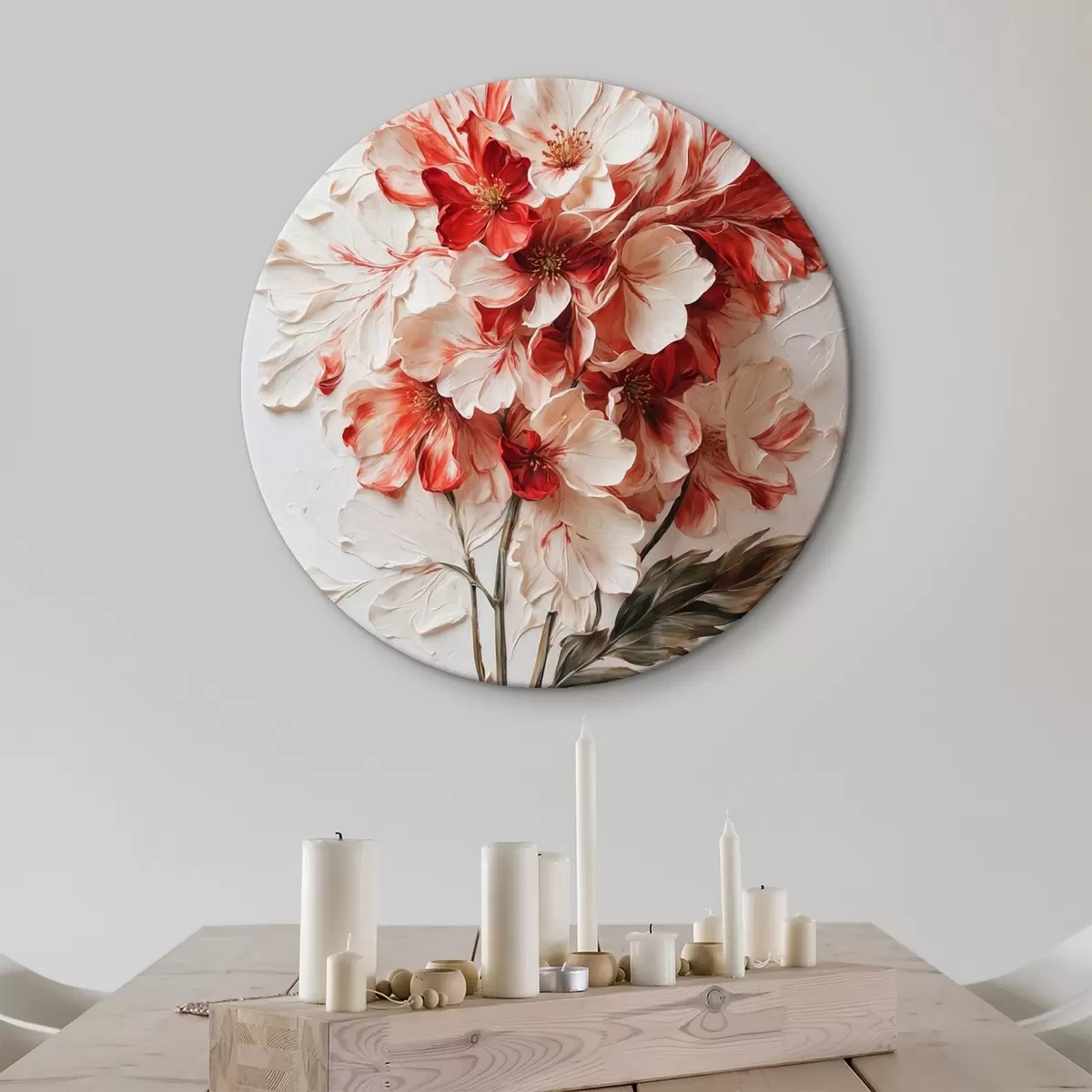 Okrągłe obrazy Czerwone i białe kwiaty w stylu malarstwa olejnego r44090