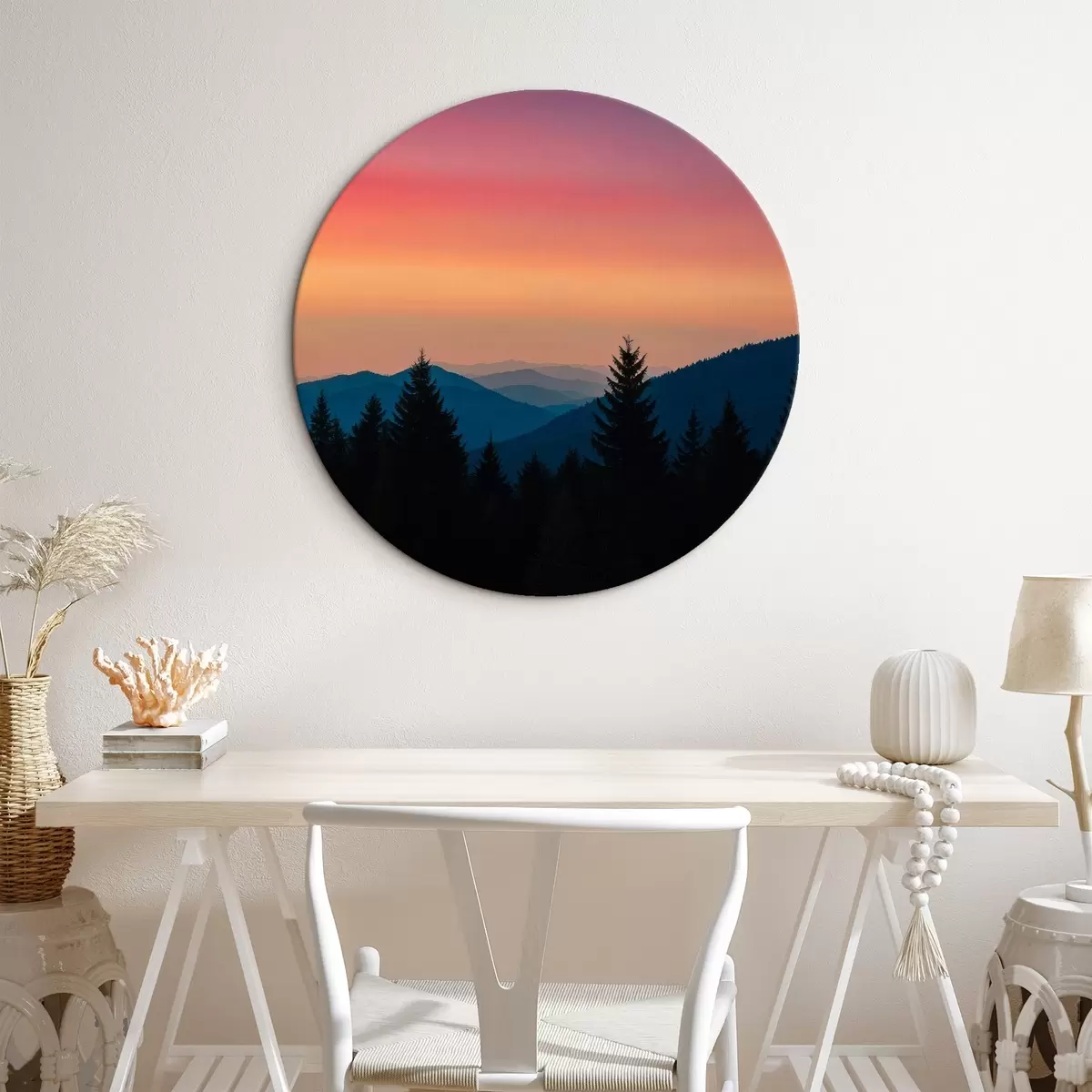 Okrągły obraz Czarny las o zachodzie słońca Nr r44096