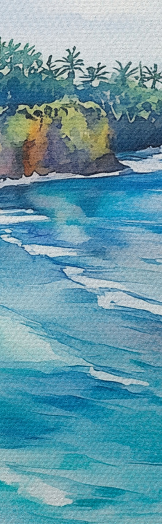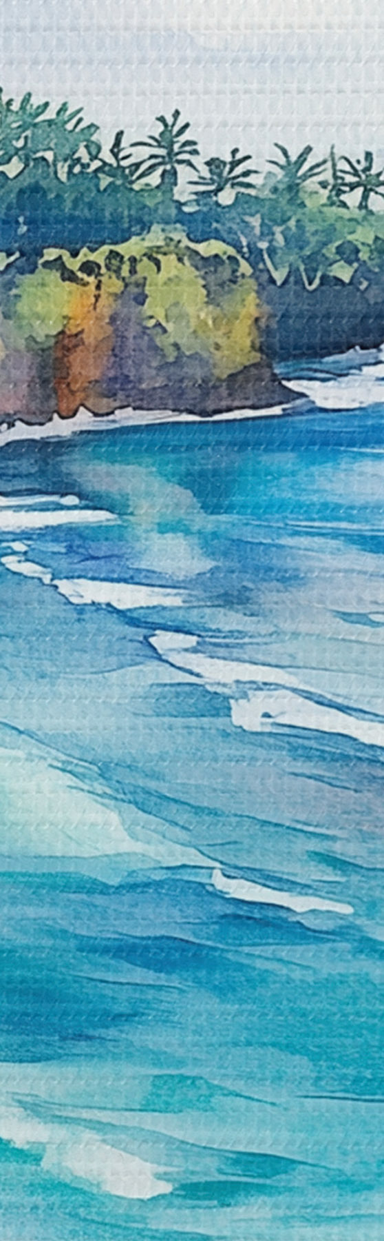 Okrągły obraz Tropikalna plaża oceaniczna, palmy, kwiaty, styl akwareli Nr r44145