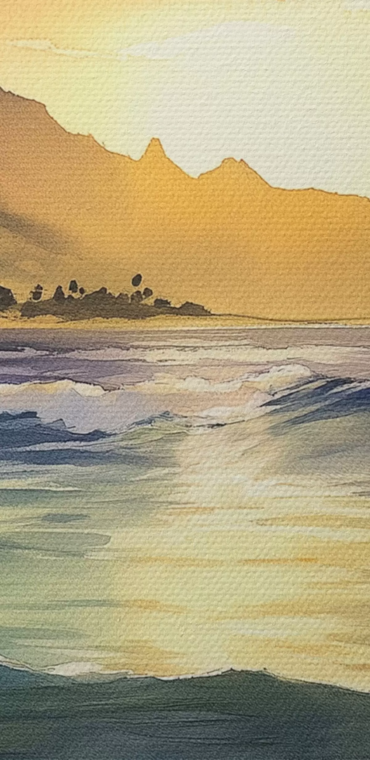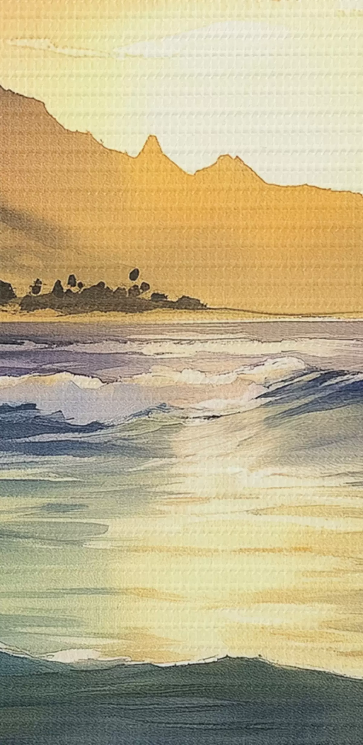 Okrągłe obrazy Fale oceanu, zachód słońca, akwarela, natura r44147