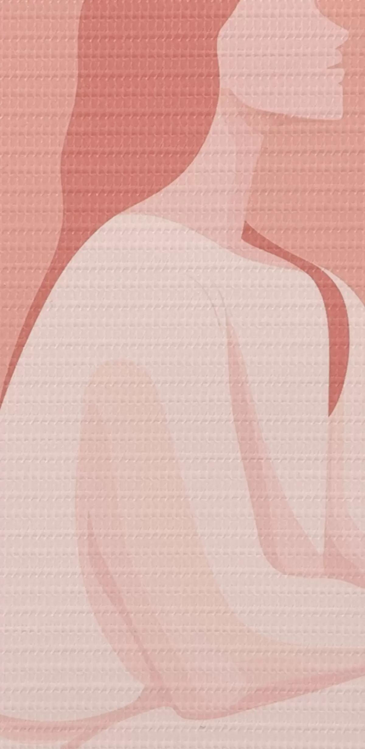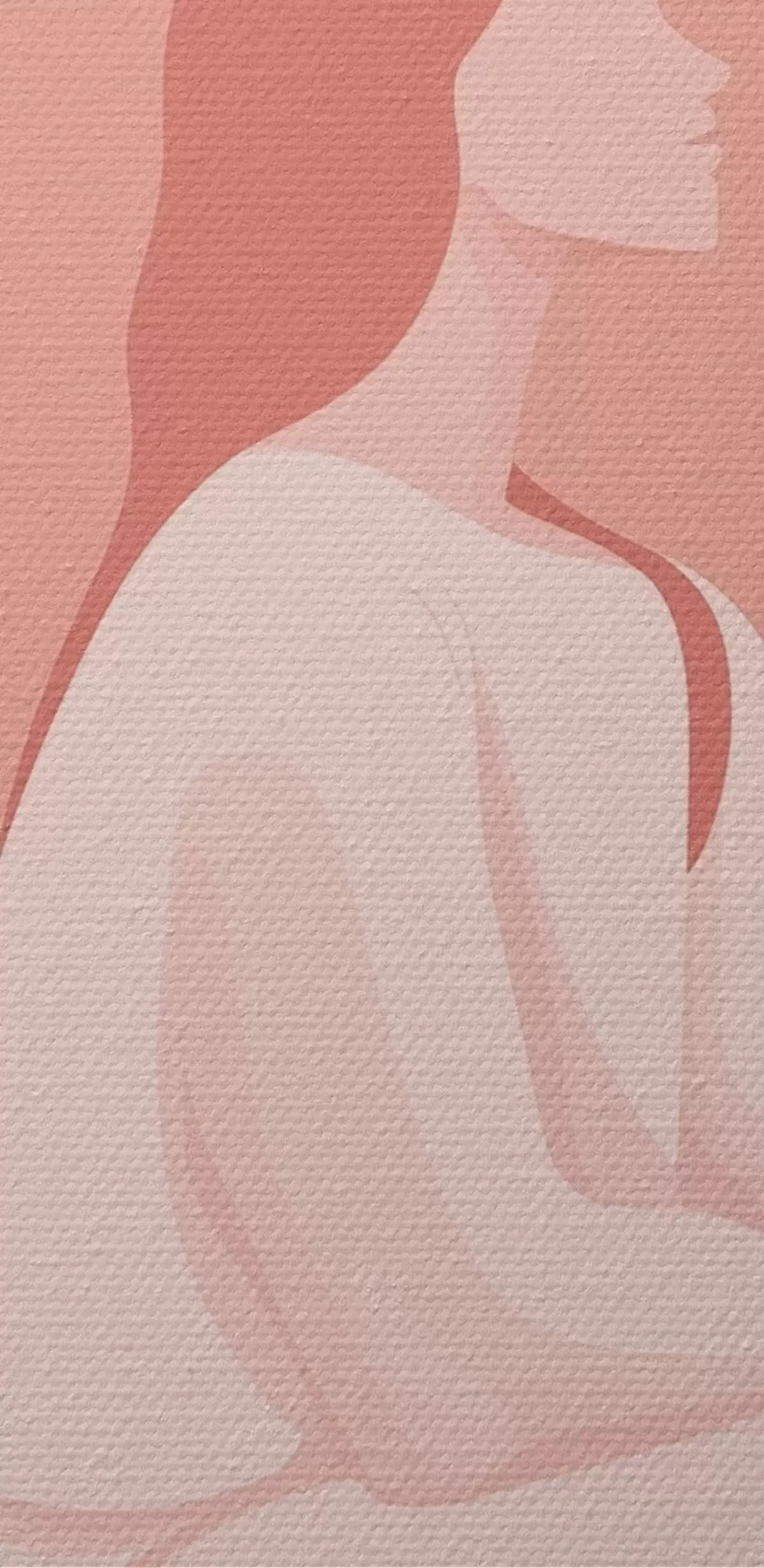 Okrągłe obrazy Kobieta w medytacji, płaski styl, tropikalne rośliny, różowe kolory r44154