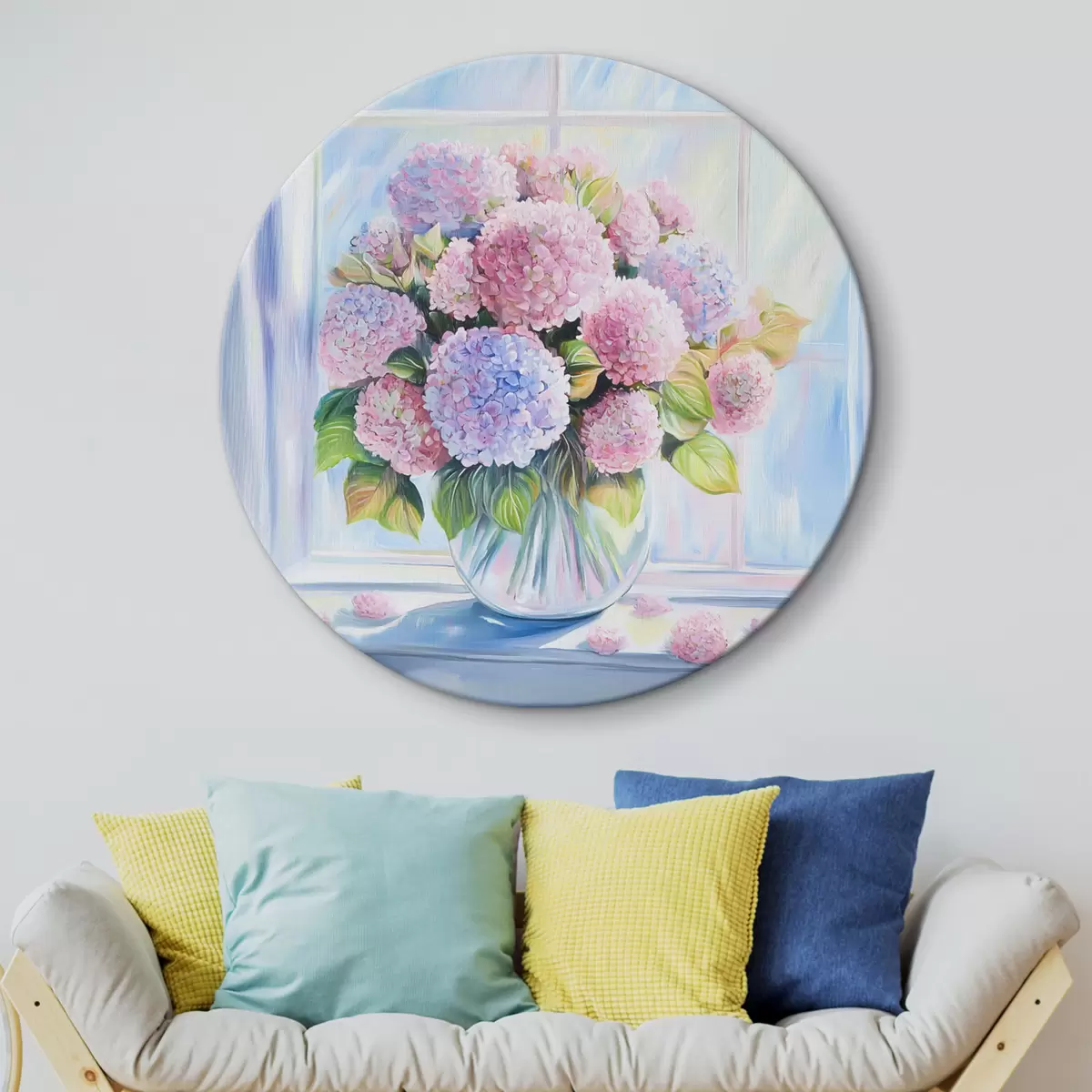 Okrągły obraz Bukiet kwiatów na oknie Nr r44210